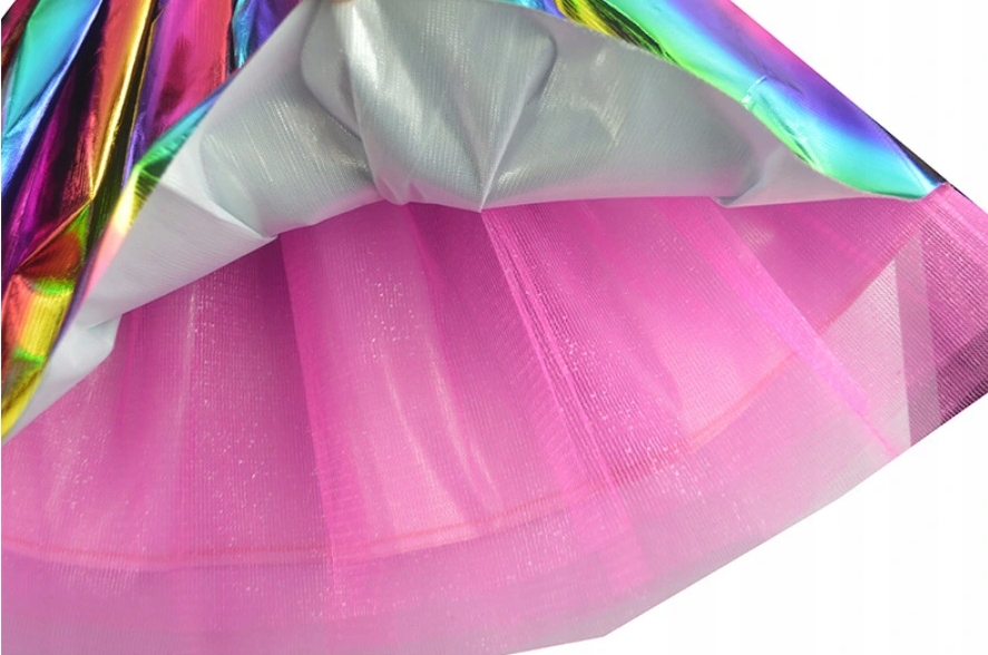 Радуга голографическая юбка состоит из Радужный материал и слой тюля с внутренней стороны.