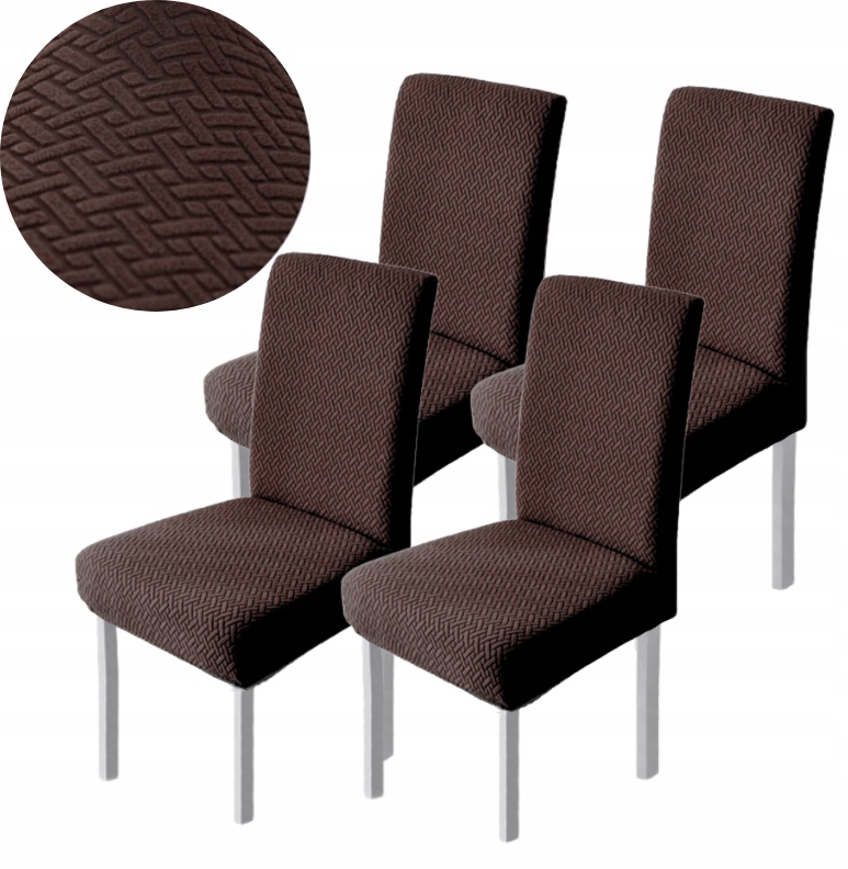 КОМПЛЕКТ 4X ЧОХЛА НА СТІЛЬЦЯ ЖАККАРД ЯЛЕДКА ЕЛАСТИЧНА КАВА ДОЩИК