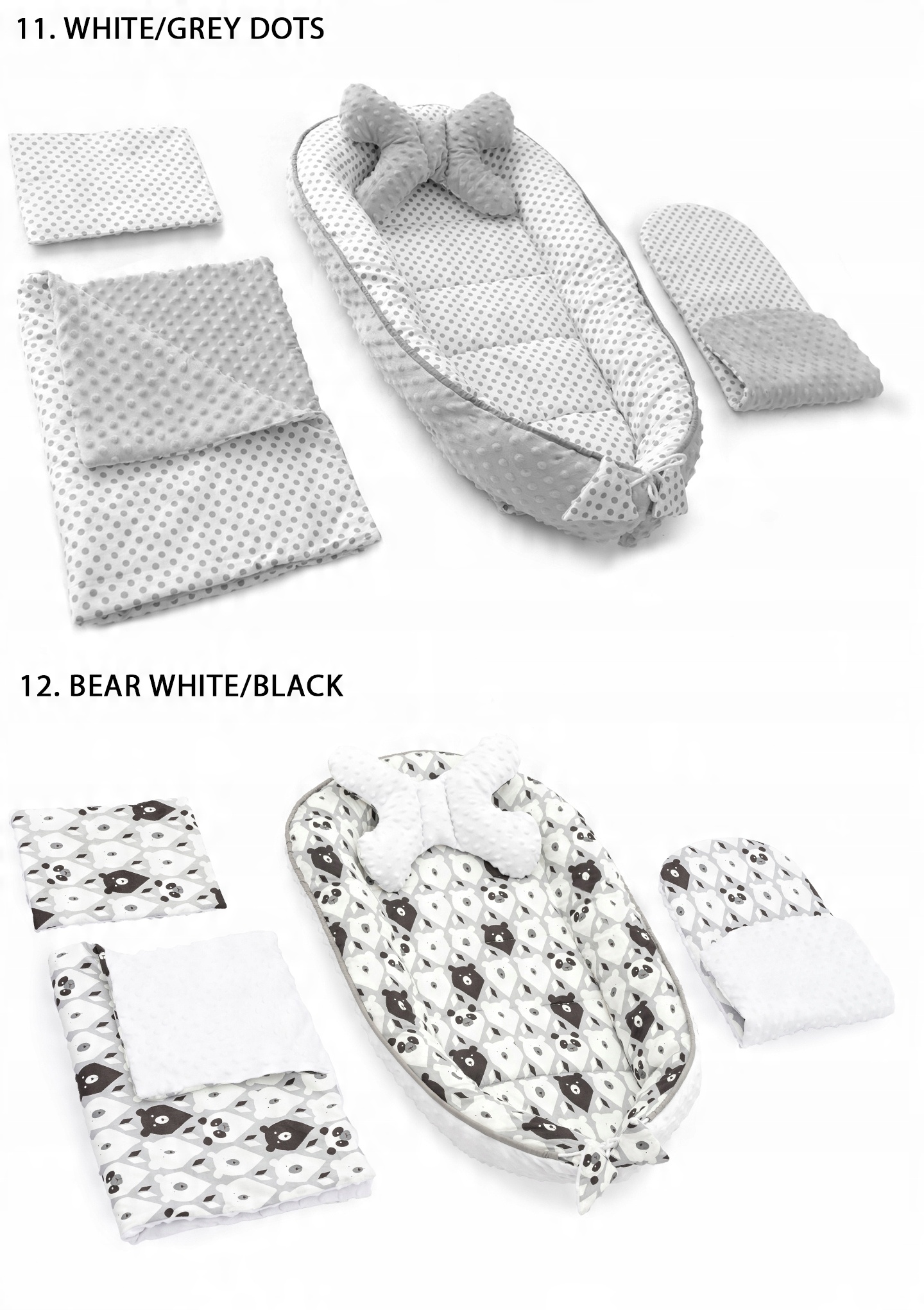Как и каждый элемент нашего комплекта, подушки двусторонние, что позволяет регулировать сторону в зависимости от температуры на улице, и будет обеспечить правильное сенсорное развитие вашего ребенка.