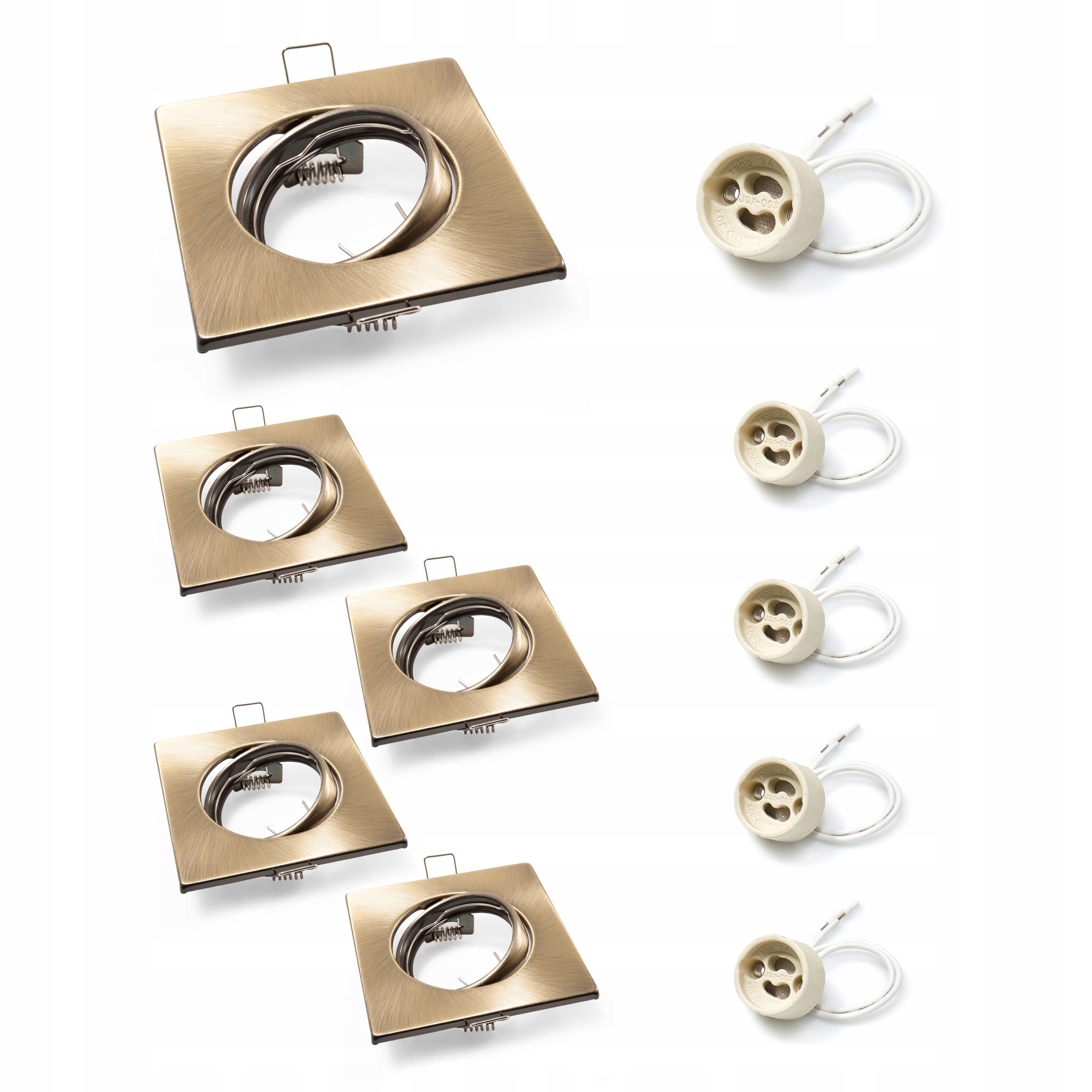 КОМПЛЕКТ 5x ГАЛОГЕННИХ РУХОМИХ ЛАТУННИХ СВІТЛІВНИКІВ В ПЛІС + РОЗЕТКА GU10