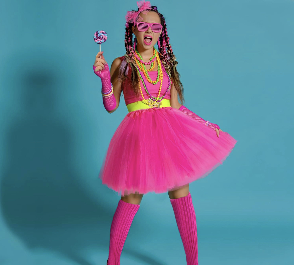 НАряд 80-х НЕОН НАБОР СЕРЬГИ ОЖЕРЕЛЬЕ ЮБКА ДИСКО ПЕРЧАТКИ 8в1