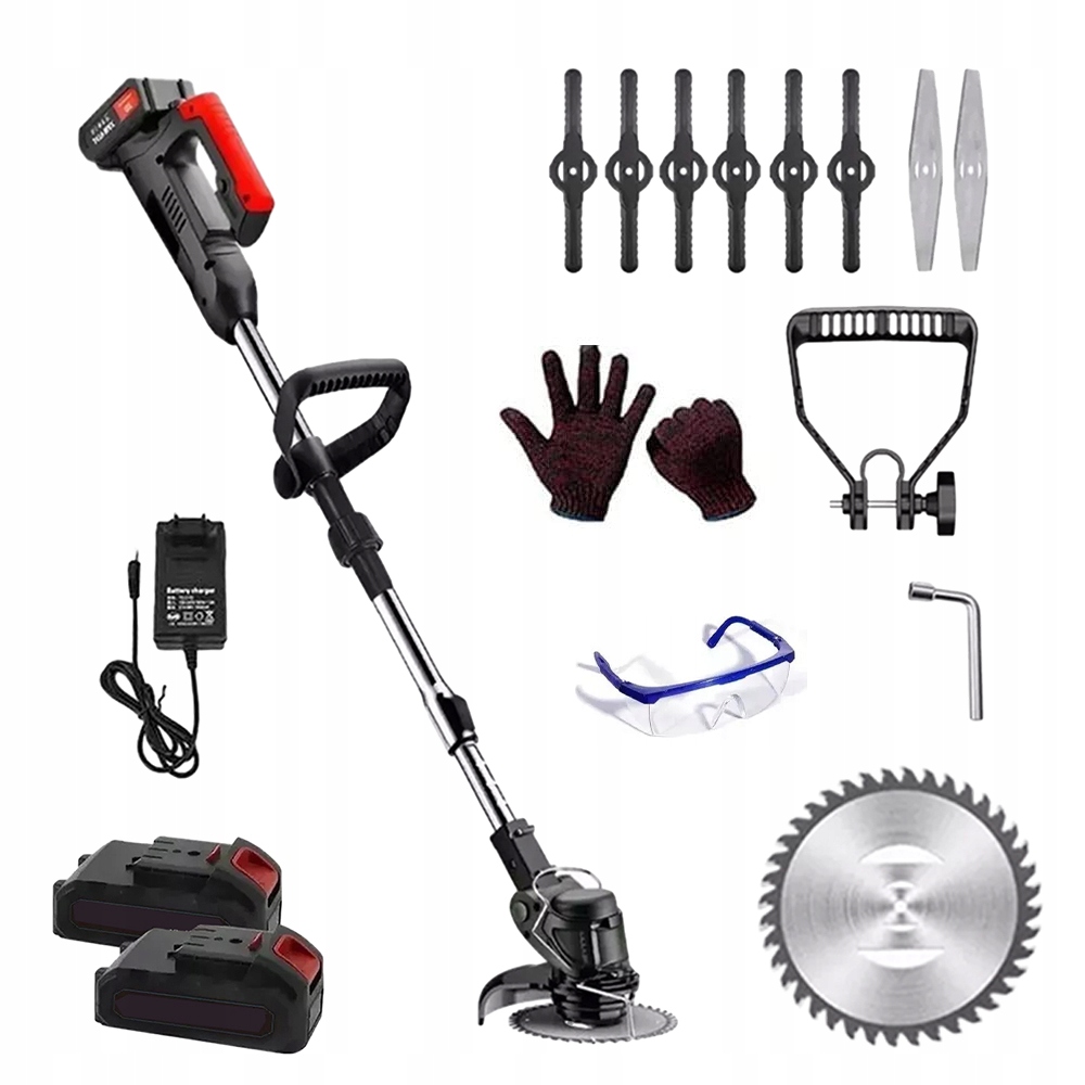 КОМПЛЕКТ АКУМУЛЯТОРНОЇ КОСАРКИ 21V + 2 АКУМУЛЯТОРИ 2000MAH + ЗАХИСНІ ОКОЛО