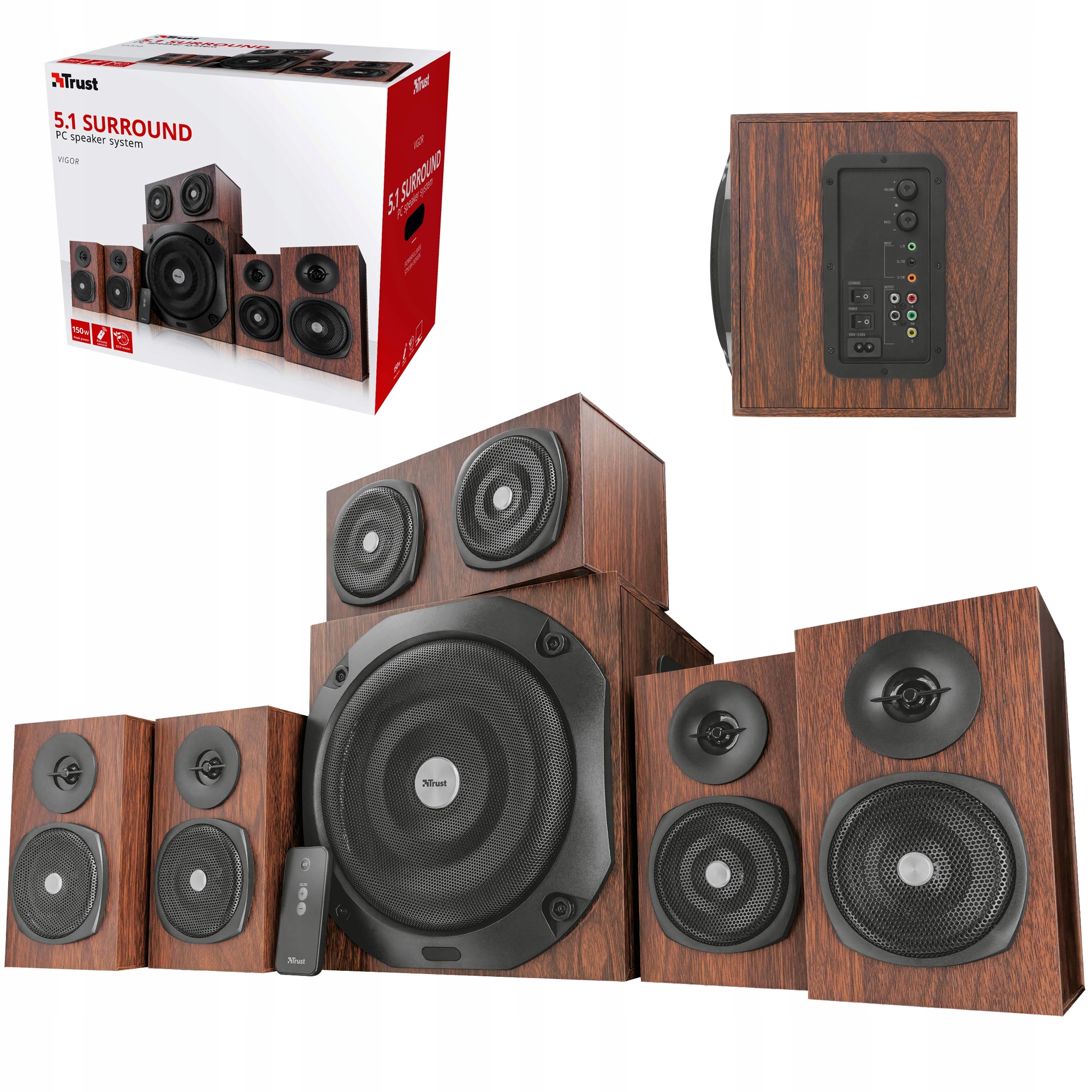 Акустическая система Trust Vigor Surround представляет собой мощный набор динамиков 5.1, который генерирует превосходный объемный звук независимо от того, играете ли вы, смотрите фильмы или слушаете музыку. Огромная пиковая мощность наполняет любую комнату насыщенным и мощным звуком, а классический деревянный дизайн прекрасно впишется в любой интерьер. С акустической системой Trust Vigor Surround вы получите незабываемые впечатления от звука!