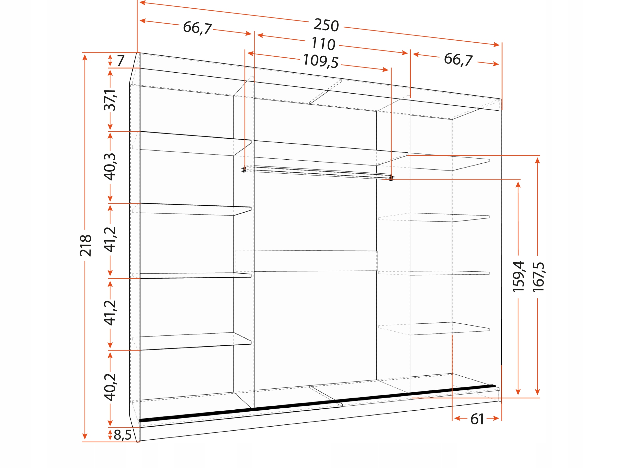 В шкафу используется высококачественная система скользящих дверей в виде роликов на подшипниках, благодаря которой дверь плавно и слегка перемещается после металлических гидов .