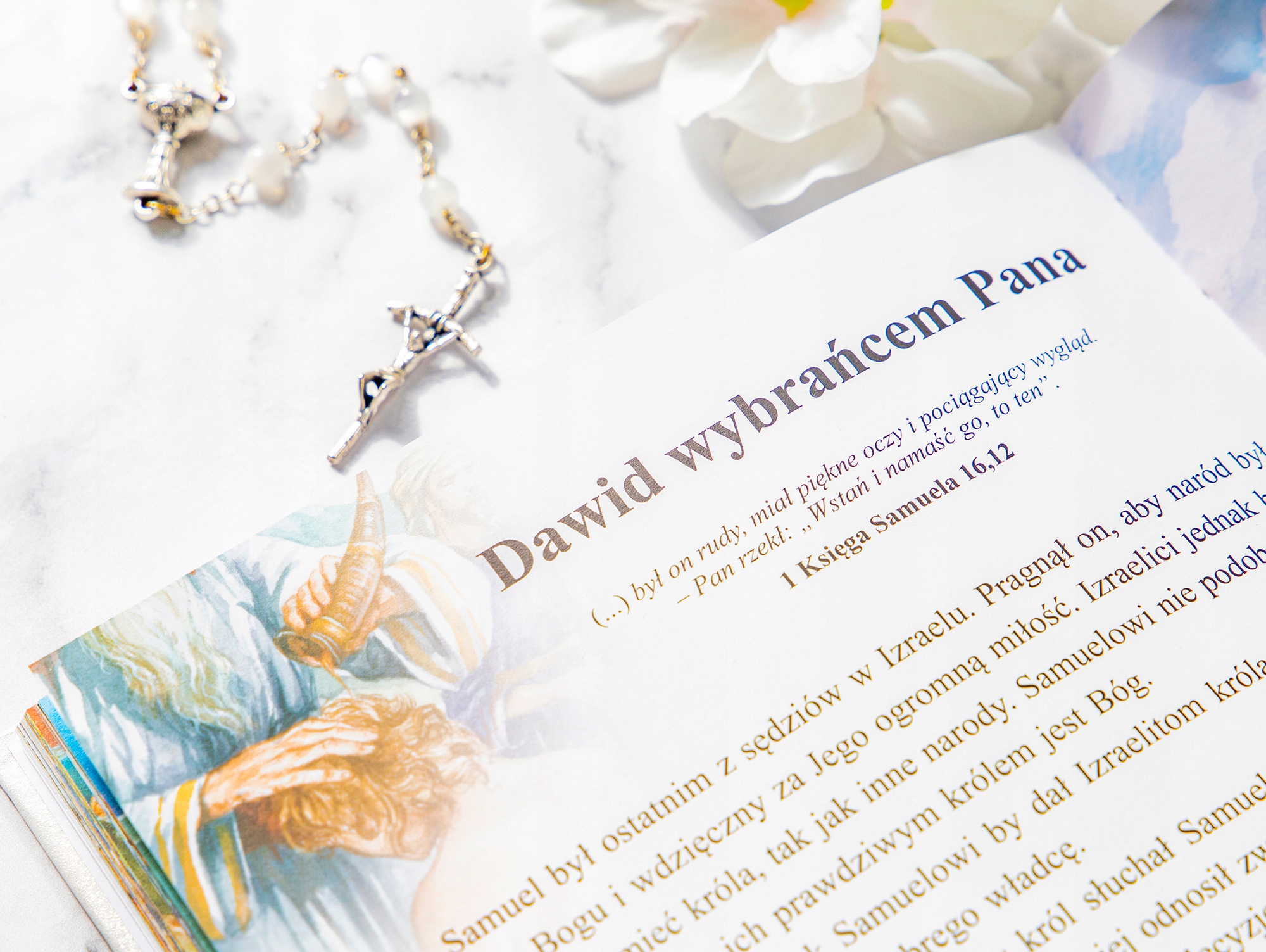 На обложке Библии есть цитата, и ее можно персонализировать, указав дату первого причастия, выбранное имя ребенка и фотографию. Новейшая технология цифровой УФ-печати позволяет сохранять чрезвычайно яркие, выразительные цвета, которые не выгорают. Высочайшее качество изготовления. Лучший подарок/сувенир к Святому Причастию.