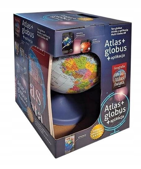 В комплект входит глобус с политическим делением диаметром 22 см и Атлас мира с расширенным разделом, посвященным Польше. Атлас и глобус в одном пакете позволяют как показать богатую информацию, пространственно распределенную на картах более крупных масштабов на меньшей площади, так и корректно представить изображение всего мира на сферическом глобусе масштаба 1:60 000 000. Поэтому они прекрасно дополняют друг друга. «Атлас мира» — книжное издание, построенное по принципу от общего к деталям. Он содержит описания и графики Вселенной, включая Солнечную систему и Землю как планету, список рекордов нашего земного шара и множество карт. Это карты: - мира - континентов - регионов - Польский глобус представляет собой изображение Земли на поверхности сферы в определенном масштабе. В отличие от карт мира, она не искажает: формы, углы, расстояния и пропорции. В заданном масштабе он точно отображает очертания континентов, островов, рек и дорог. Глобус имеет функцию вращения (соответствующую вращению Земли вокруг своей оси, в результате которой определяется время суток), что позволяет удобно просматривать любую область нашего земного шара. По сравнению с атласом глобус исправляет неудобства, возникающие из-за упомянутых выше искажений на картах мира. Однако по понятным причинам он не может конкурировать с атласом по содержательной насыщенности. Глобус диаметром 22 см, выполненный в масштабе 1:60 000 000, содержит около 1400 различных географических имен собственных. Трудно было бы представить себе использование гигантского глобуса, выполненного в том же масштабе, что и карта Польши, представленная в атласе, т.е. 1:1 500 000 – его диаметр должен был бы составлять примерно 8,5 м! Глобус имеет эстетичную пластиковую основу, удобен и легок.
