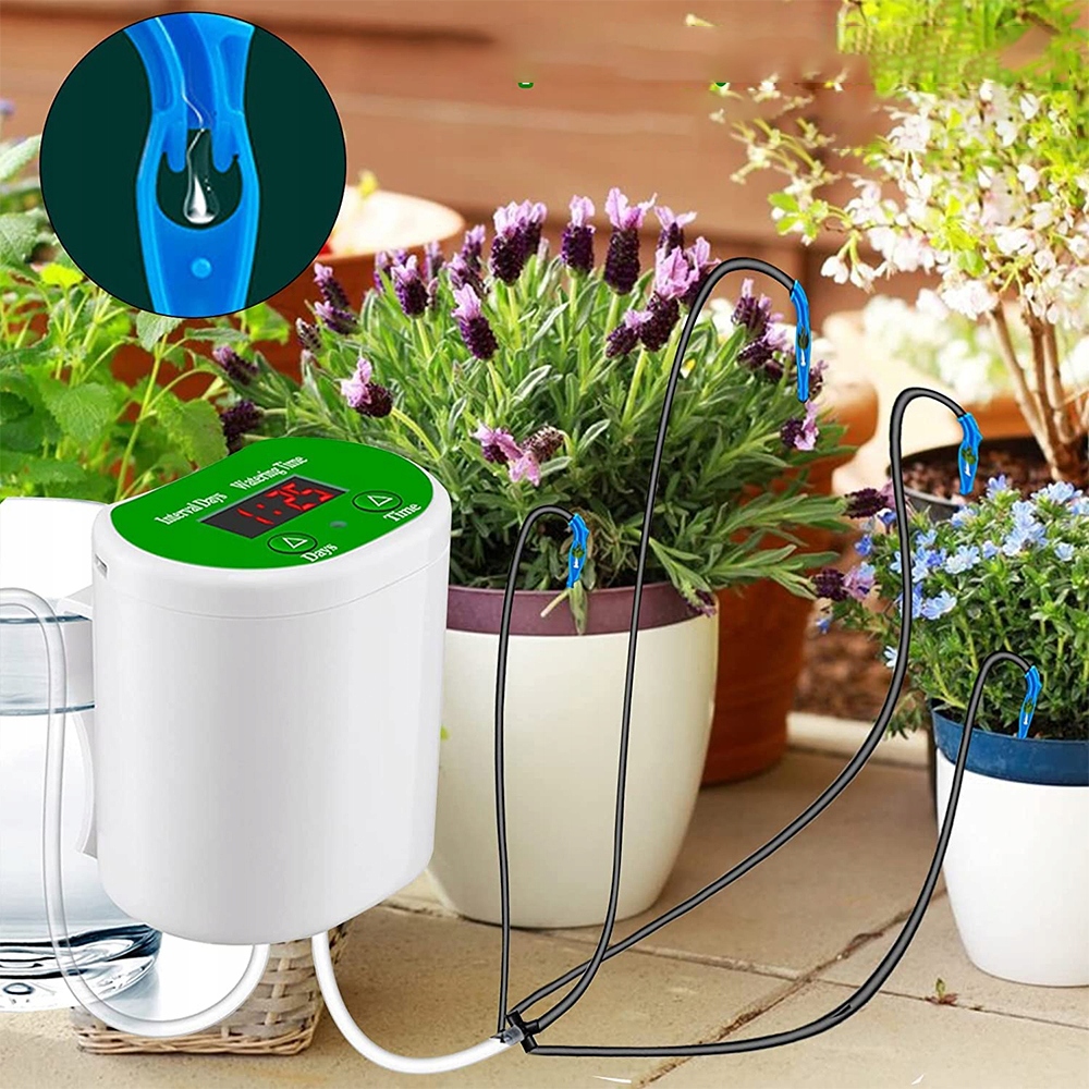 >🪴Просто установите временной интервал (от 1 часа до 60 дней) и объем подаваемой воды (от 10 до 990 мл), и после программирования эта автоматическая система полива растений будет поливать ваши растения за вас.