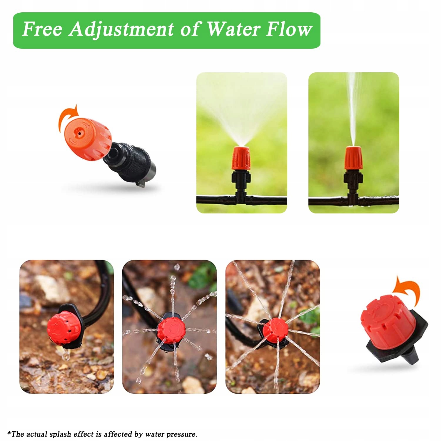 Поливайте все растения одновременно, каждую насадку можно настроить индивидуально, что позволяет одновременно удовлетворить потребность в воде разных растений. Вы можете прекратить/продолжить полив растений, повернув кнопки на двухстороннем разъеме или переключив капельницу и переключатели форсунок.