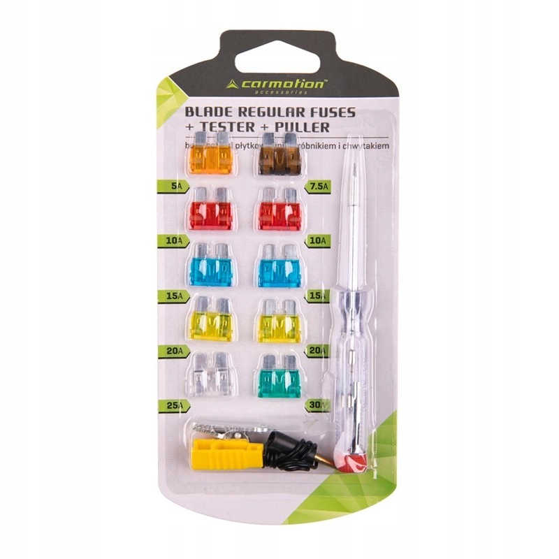 Предохранители однопластинчатые, 10 шт.+тестер 6-24В+захват
