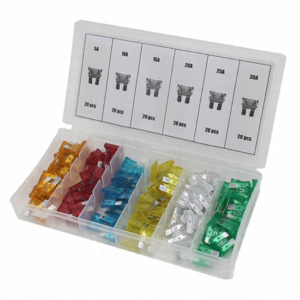 Набор предохранителей в закрытой коробке с отсеками содержит разноцветные универсальные предохранители с током от 5 до 30А. Предназначен для механиков и электриков в электротехнических, электронных, автосервисах и т.п. Ножевые предохранители сортируются в пластиковом сортировщике.