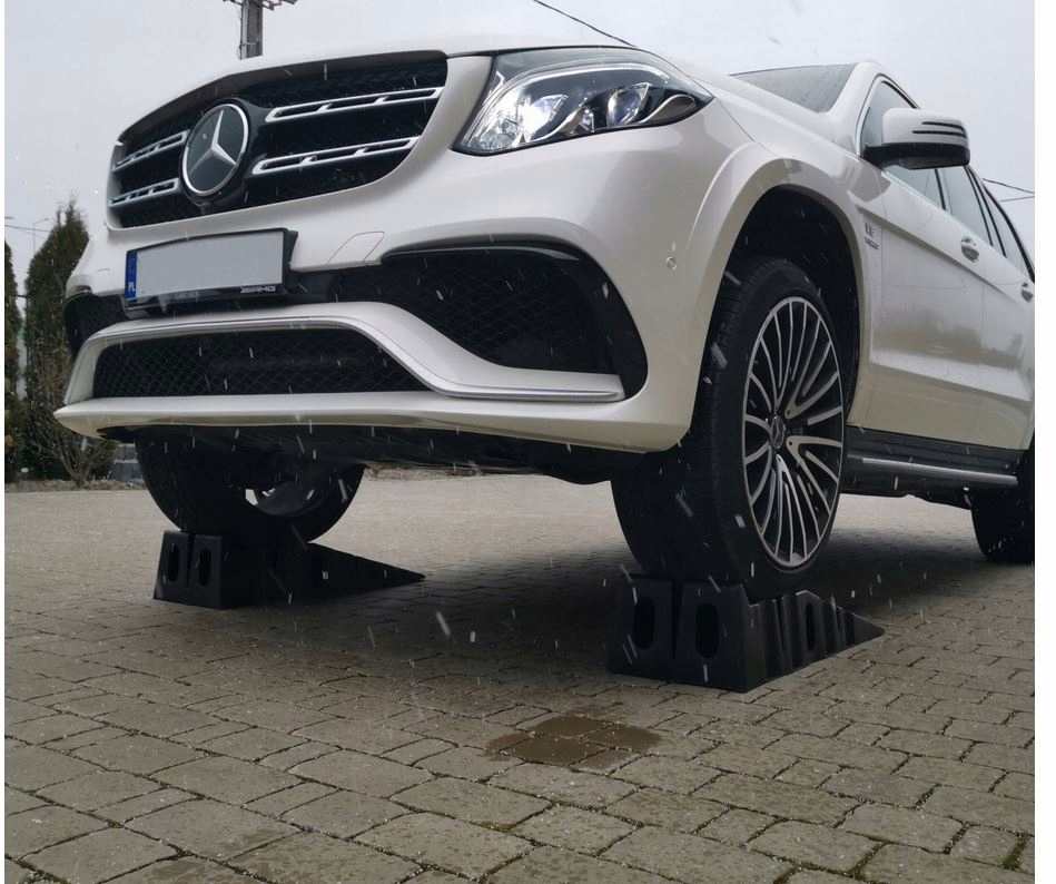 Прампы оборудованы высоким порогом, защищающим автомобиль от скатывания вперед. Кроме того, вся рампа покрыта специальной конструкцией, увеличивающей сцепление.