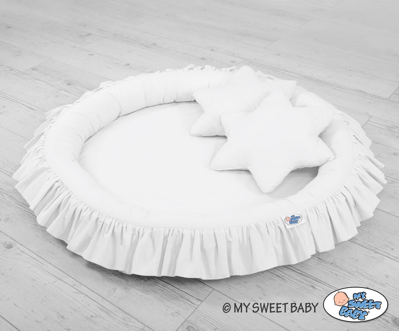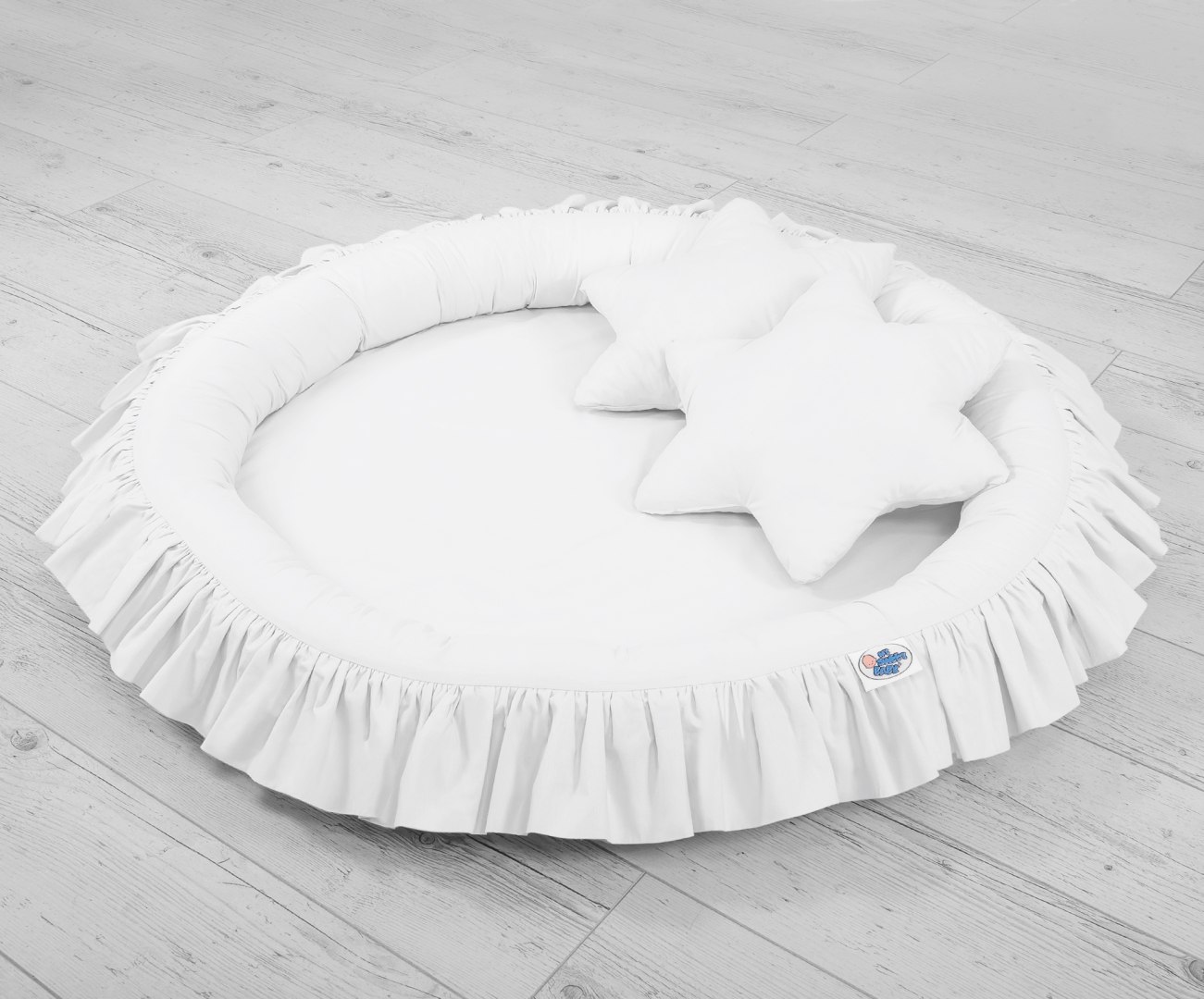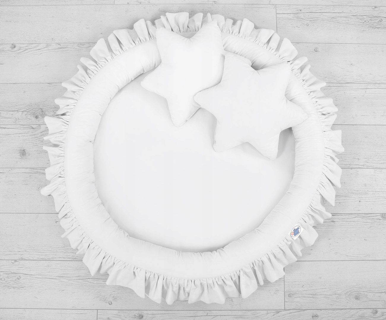 Навес изготовлен из 100% хлопчатобумажной ткани, сертифицированной Okotex. По бокам имеются практичные ленты, которые позволяют закрепить балдахин по вашему желанию. Благодаря съемному ободу его легко содержать в чистоте – его можно стирать в машине при 30 градусах. В сочетании с функциональностью и практичностью он создаст идеальное тихое место для игр и отдыха. Широкие, круглые и мягкие стенки обеспечивают безопасную и приятную игру каждому ребенку. Боковые стороны розетки наполнены сертифицированным волокном Eco Fillball — мягким волокном, сформированным в крошечные шарики. Благодаря особой технологии производства эти шарики получаются пушистыми и эластичными, и в то же время мягкими и нежными на ощупь, как пух, обеспечивая достаточную циркуляцию воздуха. Низ розетки представляет собой специальную вставку из современного, антиаллергенного, сертифицированного сырья. Чехол изготовлен из 100% хлопчатобумажной ткани, сертифицированной Okotex. Гнездо легко содержать в чистоте, чехол съемный - машинная стирка при 30 градусах.