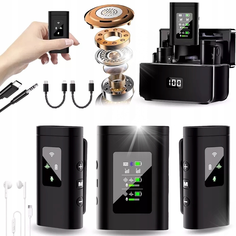 ✔ приемник со многими портами : приемник (46x32x20 мм) оснащен портами USB-C и функцией Bluetooth для воспроизведения музыки на заднем плане. Индикаторы соединения, состояние батареи и звуковой эффект; регулятор громкости; Задержка до 25 мс.