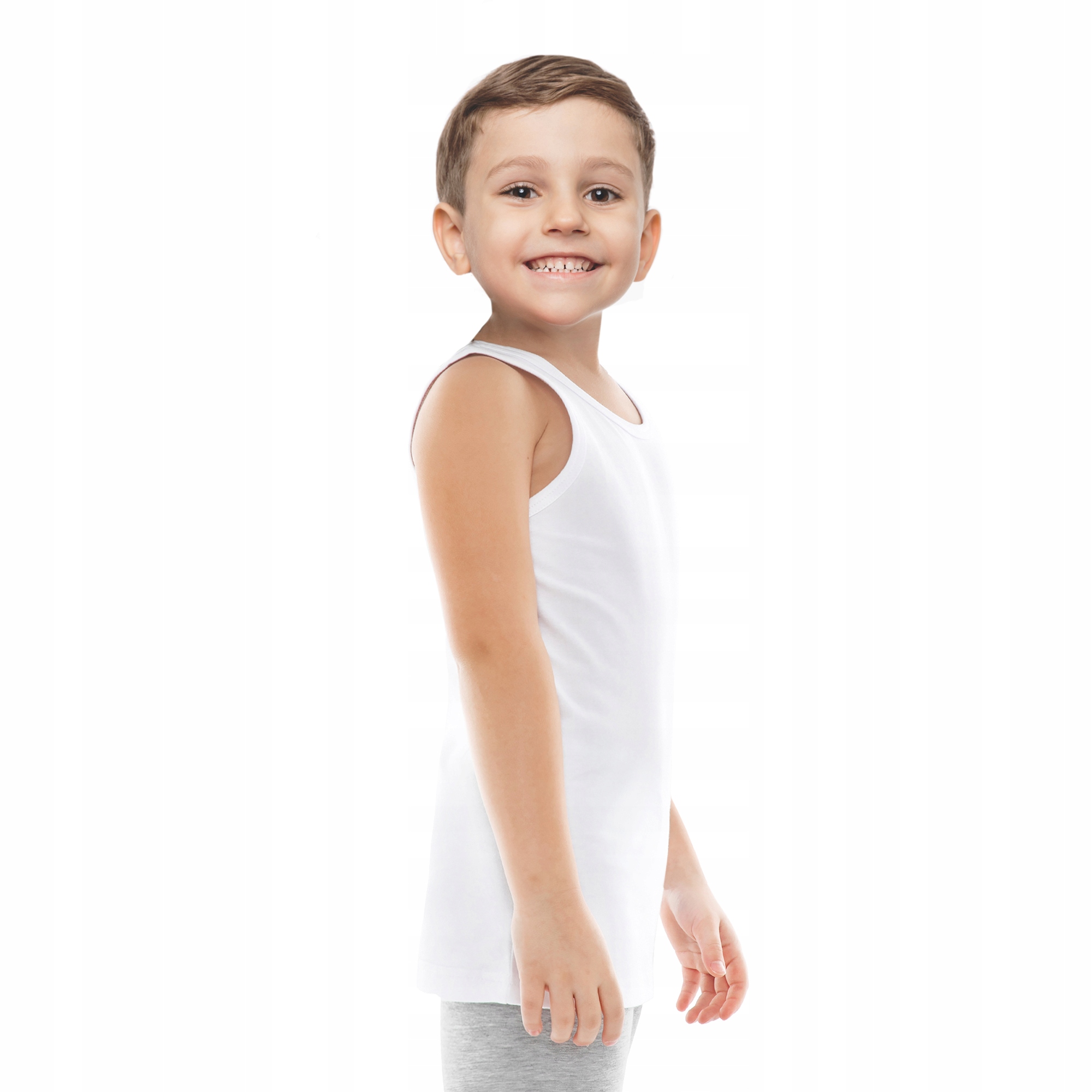 К костюму отлично подойдет комплект нижнего белья для мальчиков. Майка для мальчиков идеально подойдет под элегантную рубашку во время важных торжеств, таких как крещение, причастие, свадьба, а также в конце и начале учебного года. Боксеры плотно прилегают к телу и не выделяются под строгими брюками. Нижнее белье из нежного, приятного к телу, чисто белого хлопка.