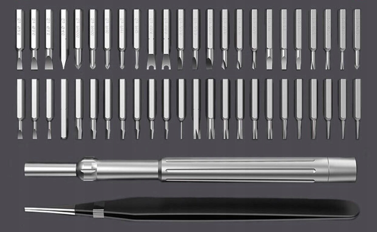 RT0125 — набор из 48 точных магнитных бит с легкой алюминиевой ручкой, предназначенных для точного сервисного ремонта телефонов и смартфонов, в том числе Samsung, Huawei, Xiaomi, Oppo и Продукция Apple, то есть iPhone, MacBook Air и Pro.