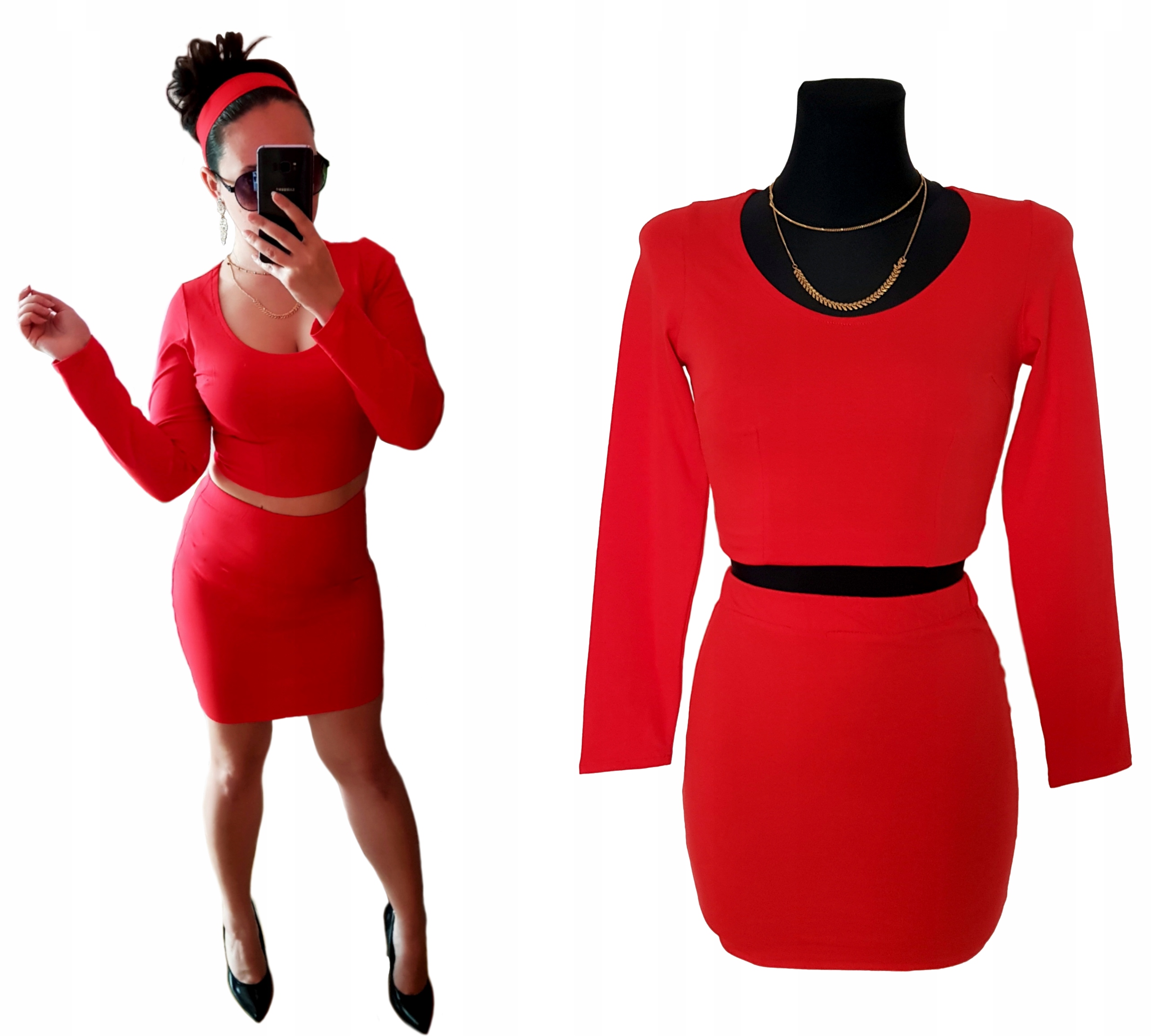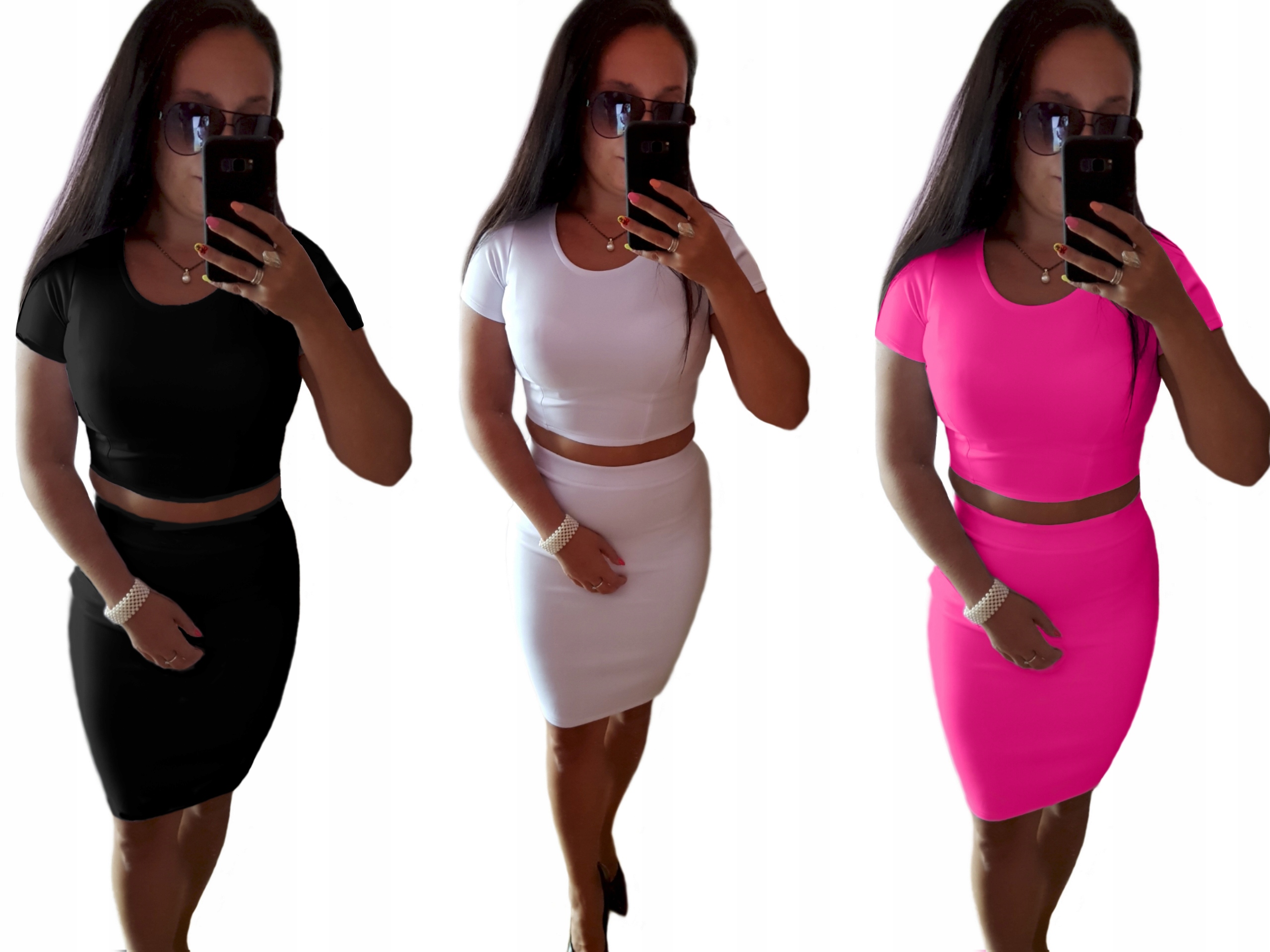 Мини-юбки-карандаша + укороченный топ с короткими рукавами.