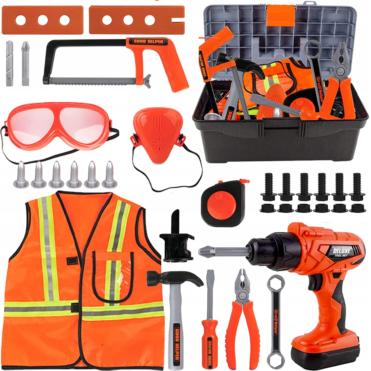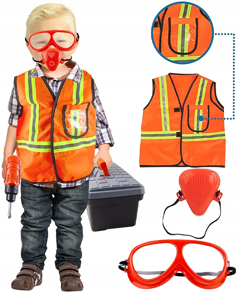 Оригинальным дополнением всего комплекта являются защитные очки и маска. Благодаря этому юный любитель DIY сможет ощутить атмосферу настоящей стройки.
