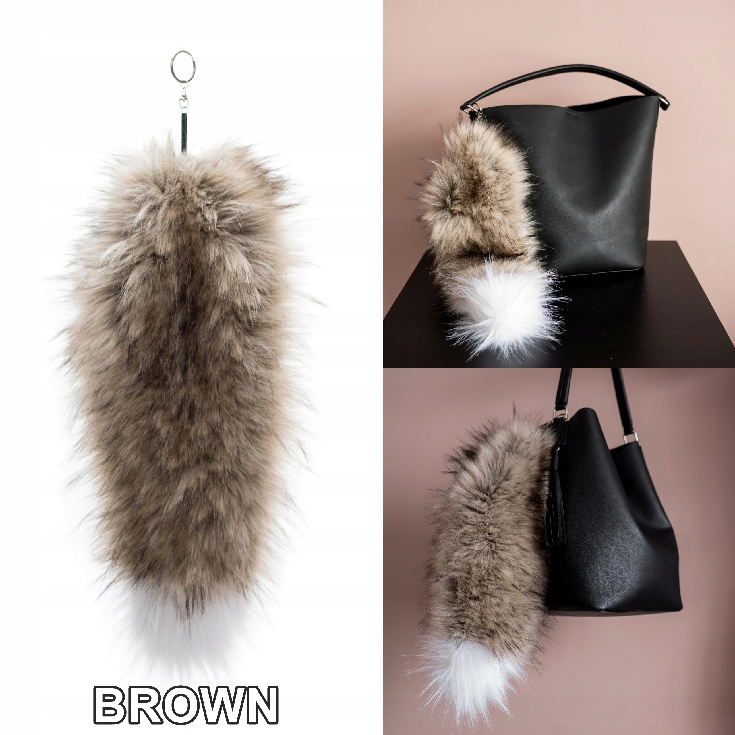 БРЕЛОК С ЛИСЫМ ХВОСТОМ ДЛЯ УКРАШЕНИЯ СУМОК, РЮКЗАКОВ И Т. Д.
