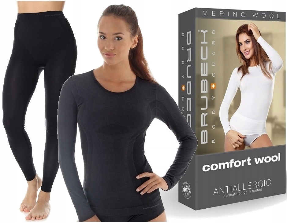 BRUBECK COMFORT MERINO WOOL комплект женского термоактивного белья / футболка с длинными рукавами рубашка и леггинсы / – лучший выбор для женщин, которые ценят комфорт и удобство. Хотя он рекомендуется для повседневного использования, благодаря техническому трикотажу его можно использовать и для легких занятий спортом. Приятный, мягкий и нежный материал в сочетании с незаметной манжетой гарантирует комфорт в течение всего дня. Благодаря используемой мериносовой шерсти белье не впитывает неприятные запахи, не вызывает аллергии и является антибактериальным. Одежду из коллекции Comfort Wool могут носить даже женщины, очень чувствительные к шерсти. Двухслойный трикотаж, шерсть снаружи и полиамид внутри, защищает от прямого контакта с кожей. Благодаря этому одежда не царапает и не раздражает тело. Сочетание шерсти и качественного полиамида значительно ускоряет процесс отвода влаги. Женское дышащее термоактивное белье Brubeck Comfort Wool можно успешно использовать для многих видов спорта умеренной интенсивности. Одежда идеально подходит для легких горных походов, треккинга и повседневного использования.