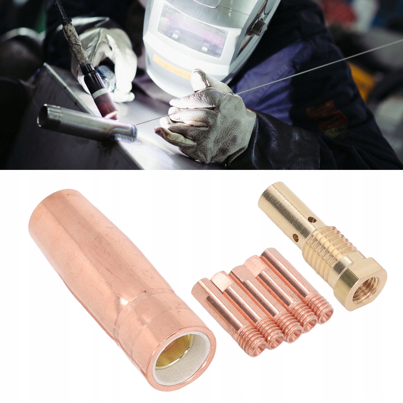 4. В КОМПЛЕКТ ВХОДЯТ: Комплект принадлежностей для сварочного пистолета Mig включает безвоздушное сопло, латунный шатун и пять латунных токопроводящих наконечников диаметром 0,035 дюйма (0,9 мм)