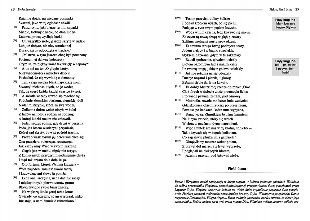 Это очень требовательное чтение, которое заставляет вас думать и, прежде всего, концентрироваться на определенных вещах. Однако я не был бы собой, если бы не прочитал такую книгу. И да, я терялся, как пресловутый ребенок в тумане, но мог похвастаться тем, что знал произведение еще в школьные годы. Через несколько лет я вернулся к «Божественной комедии», и она мне очень понравилась (...) «Божественная комедия» издательства «Грег» — книга, настолько отточенная в техническом плане, что я могу рекомендовать ее каждому студенту. Издание без сокращений, сокращений, с выделенным самым важным, безусловно, будет полезно для изучения перед экзаменом или зачетом (...) Обложка книги тоже заслуживает плюса - она такая же загадочная, немного пугающая, но для меня крайне интригующе.