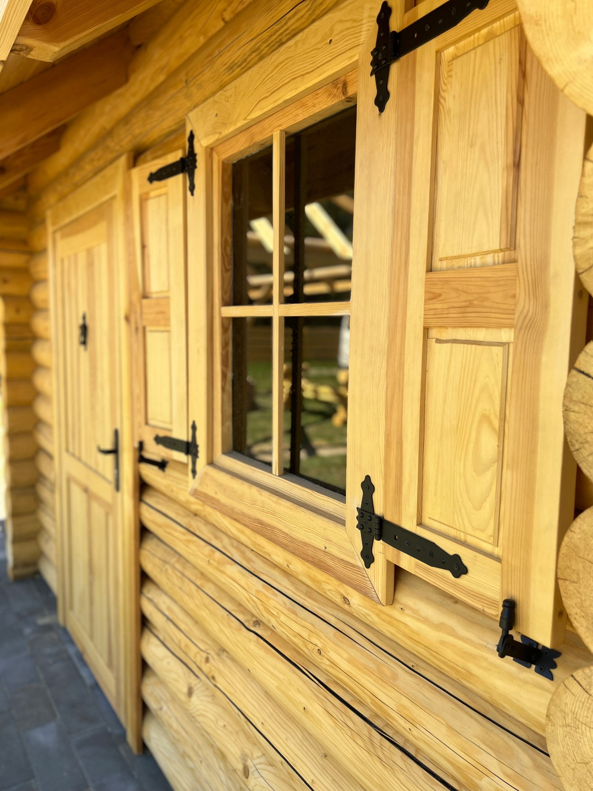 Окно и ставени изготовлены из сосновой древесины камерной сушки, пропитаны Фобосом М4.