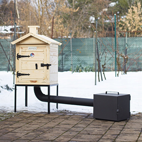 - · внешние размеры деревянной коптильной камеры: 50 х 50 х 60 [см] - без крыши