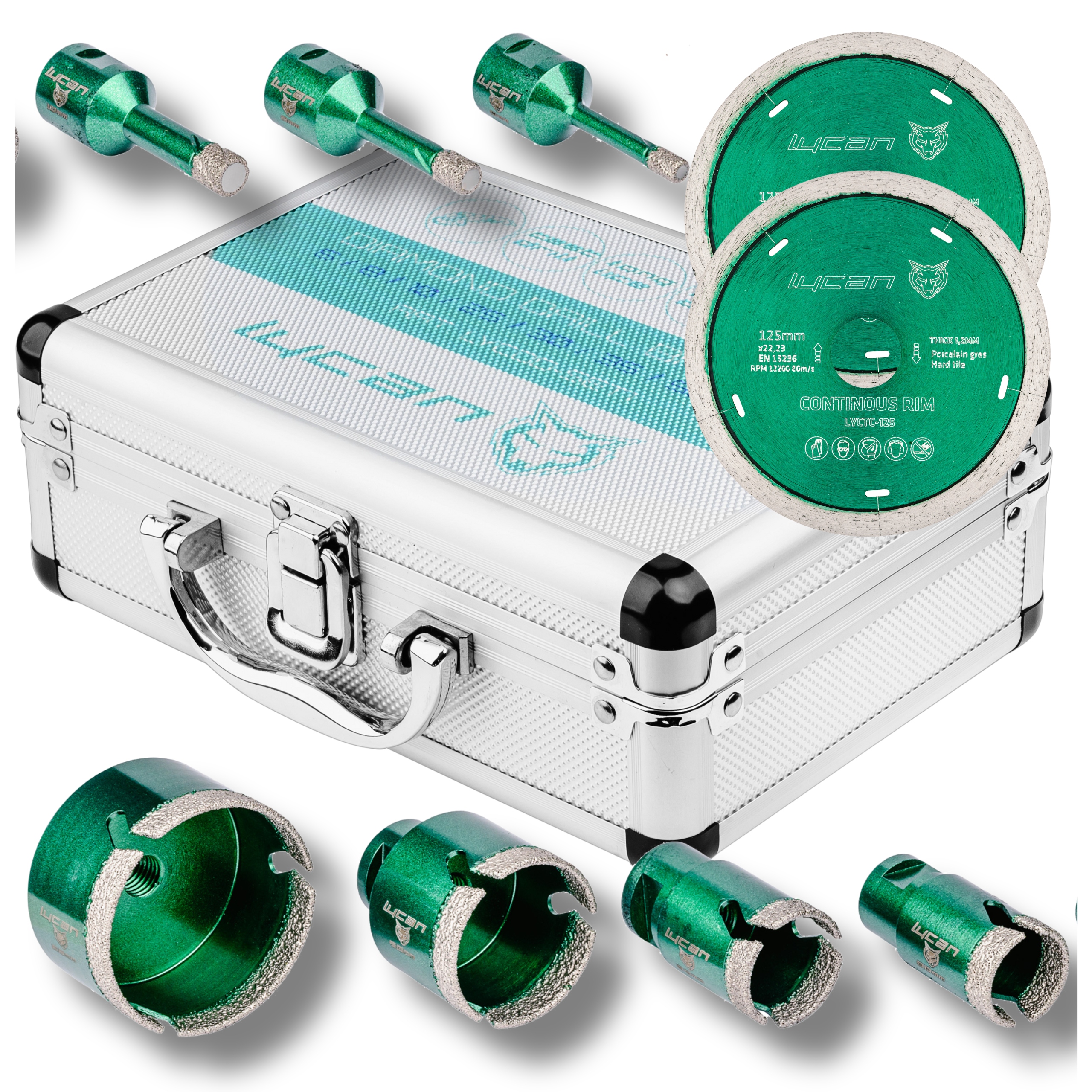 ✨Набор алмазных коронок, сверла по керамограниту LYCAN - 8 коронок + 2 диска 125мм