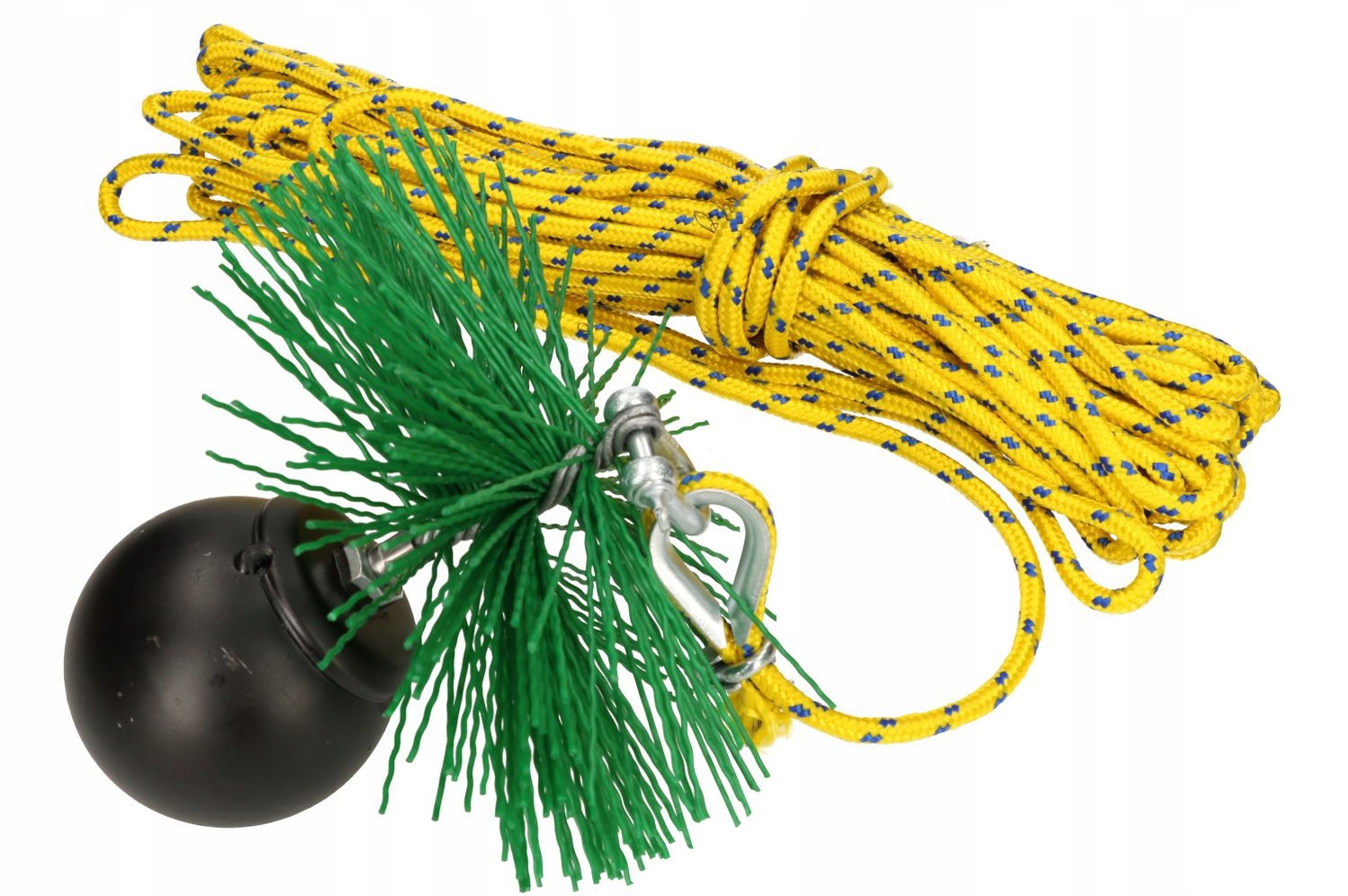Набор для чистки дымохода с прилагаемой пластиковой щеткой для каминов/дымоходов из пластика, нержавеющей стали, керамики. Набор также легко и удобно чистит кирпичные дымоходы и камины. В случае печных труб выбирайте диаметр щетины, который на несколько сантиметров больше диаметра очищаемой трубы. Если кисть слишком большая, пластиковую щетину можно подрезать бокорезами или плоскогубцами. Цвет веревки выбирается случайным образом.