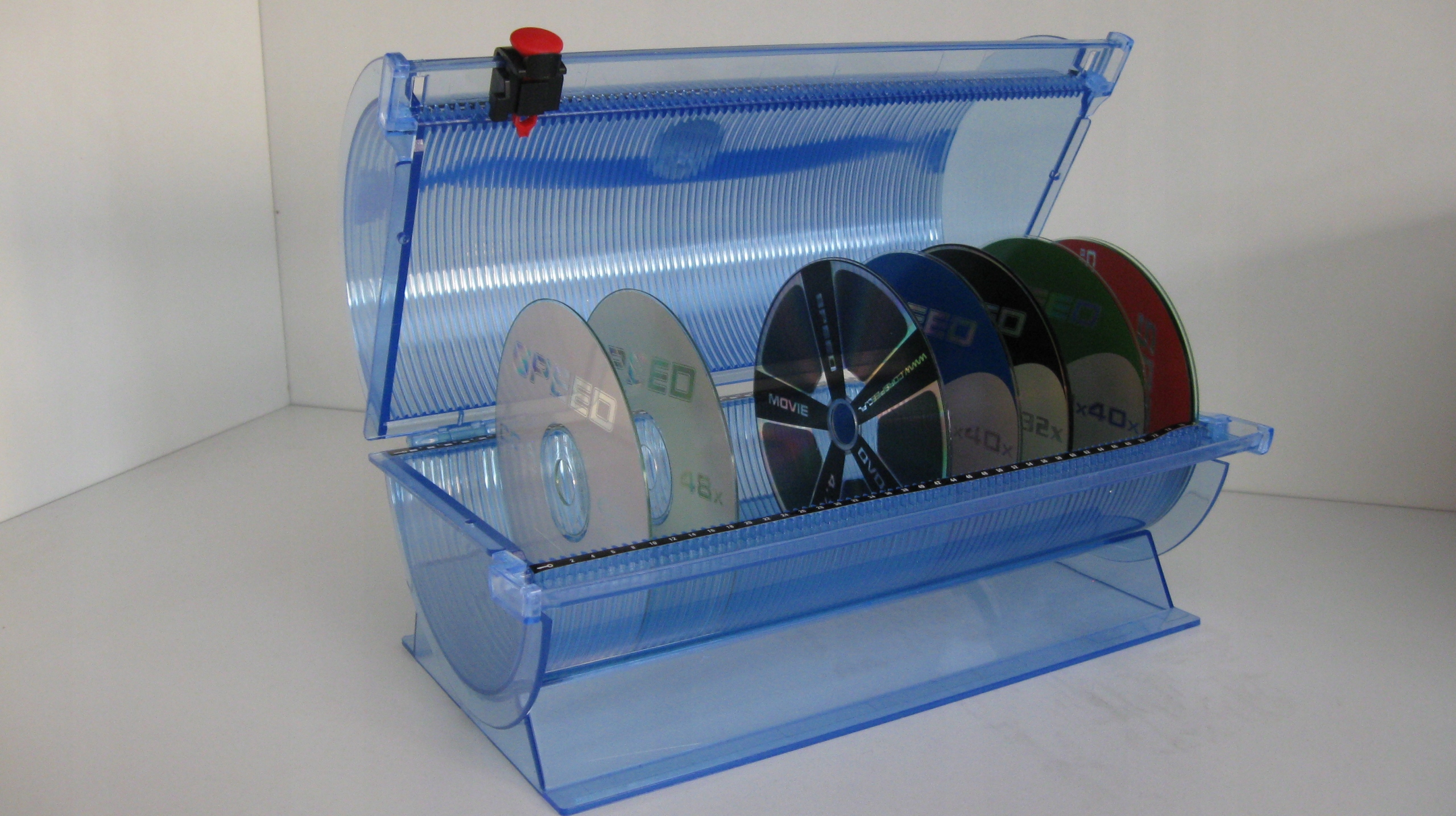 Коллективная коробка на 80 CD/DVD синего цвета со ползунком для выбора выбранного диска