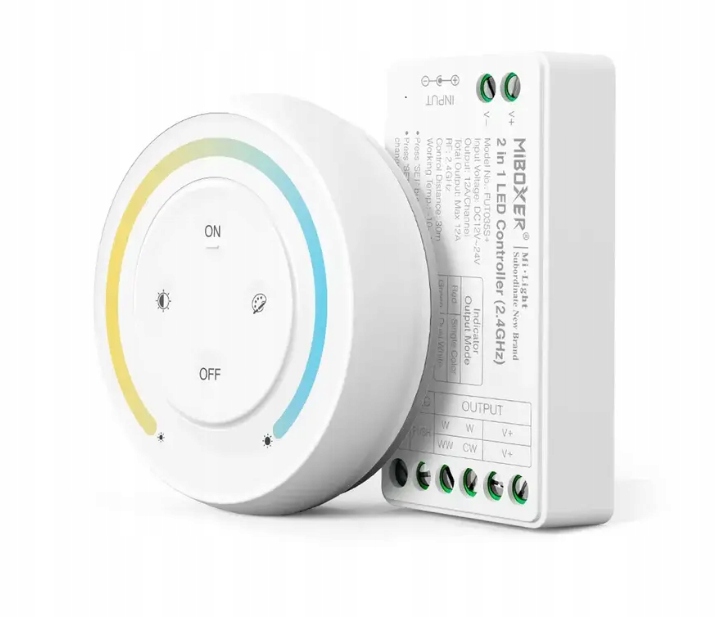 НАБОР MI-LIGHT: РАДИОДИММЕР ДЛЯ СВЕТОДИОДНЫХ ЛЕНТ CCT (2 канала) FUT035S + ПУЛЬТ ДИСТАНЦИОННОГО УПРАВЛЕНИЯ РАДИО S1 БЕЛЫЙ