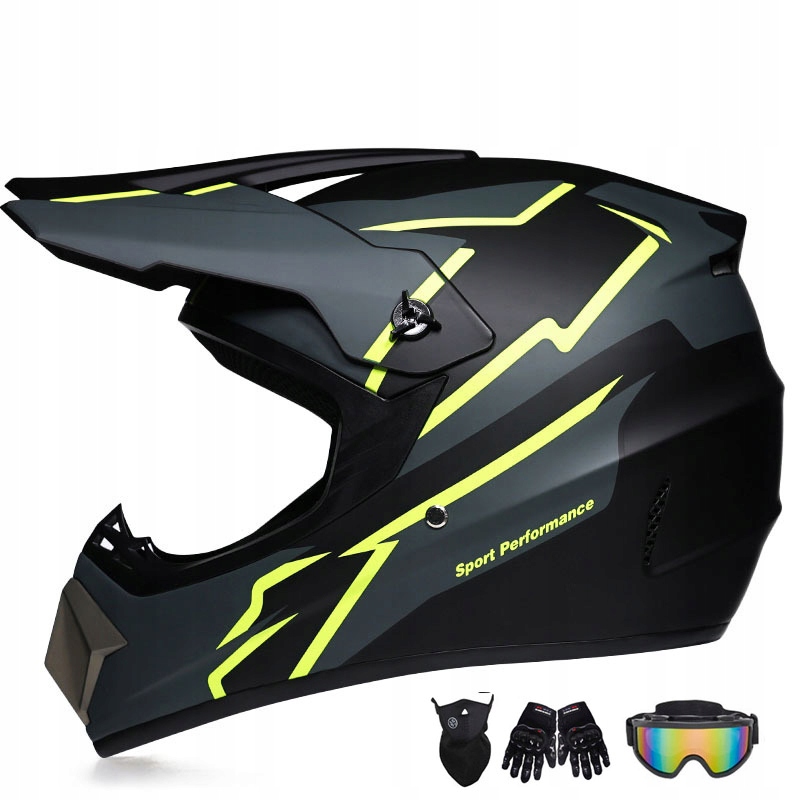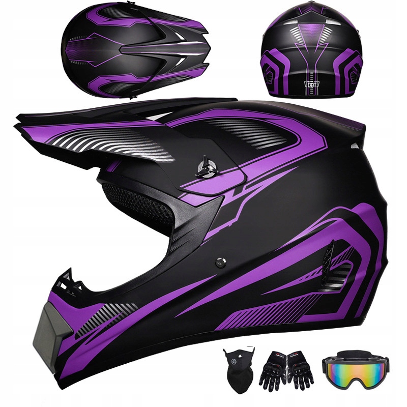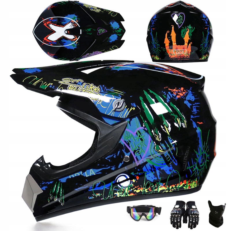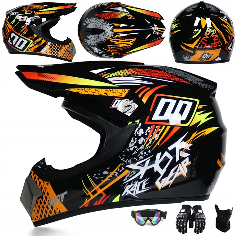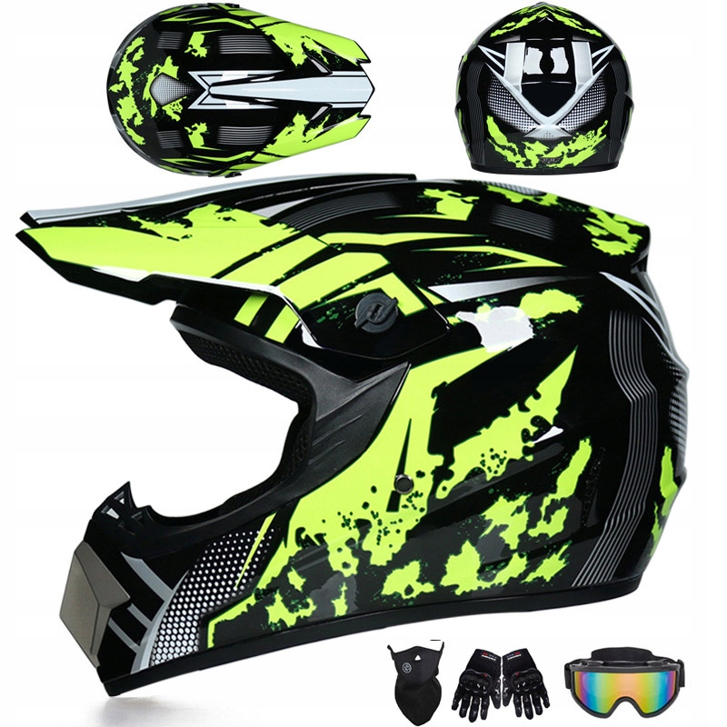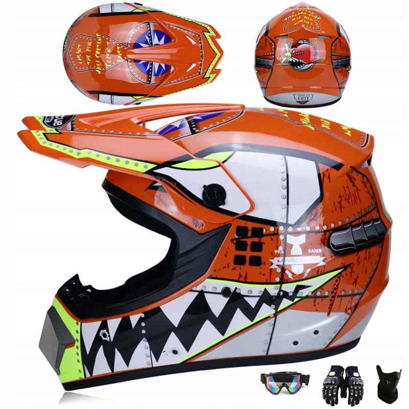 Комплект детского шлема для мотокросса Full Face - очки для бездорожья + перчатки.