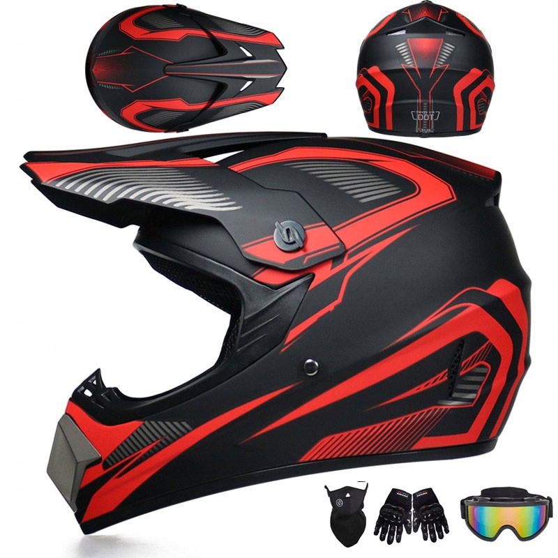 Комплект детского шлема для мотокросса Full Face - очки для бездорожья + перчатки.