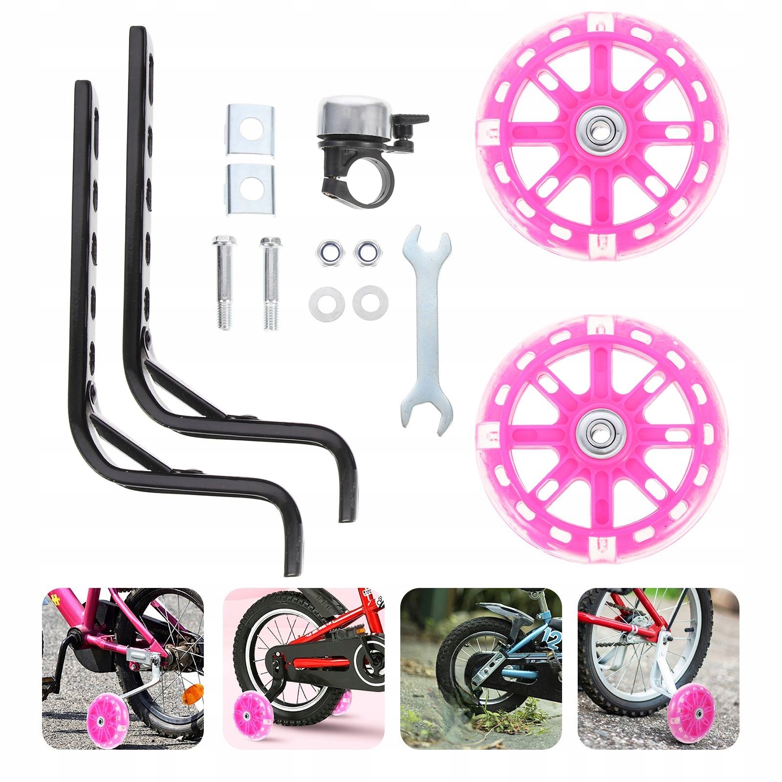 1 комплект легко устанавливаемых износостойких тренировочных колес с велосипедным звонком для детей