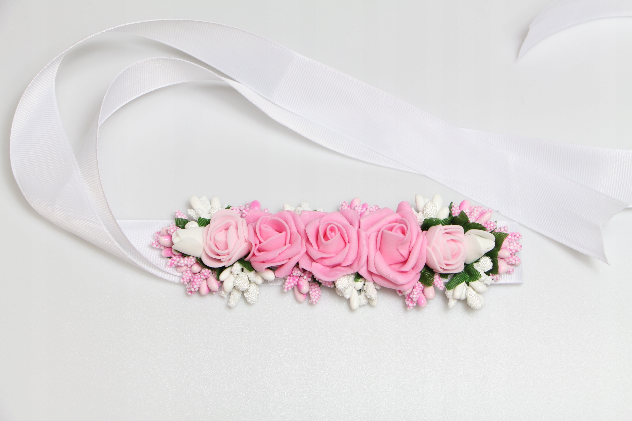 Повязка на голову без давления, украшенная розовыми и белыми цветами и фурнитурой.
