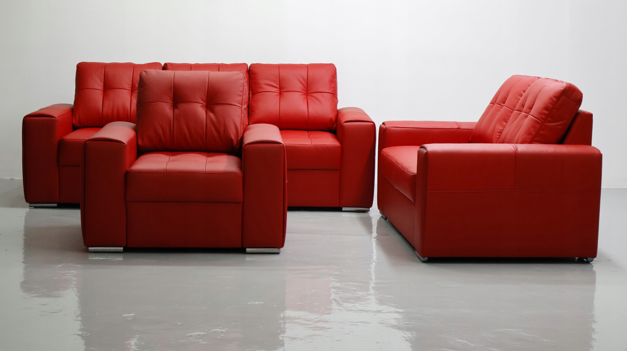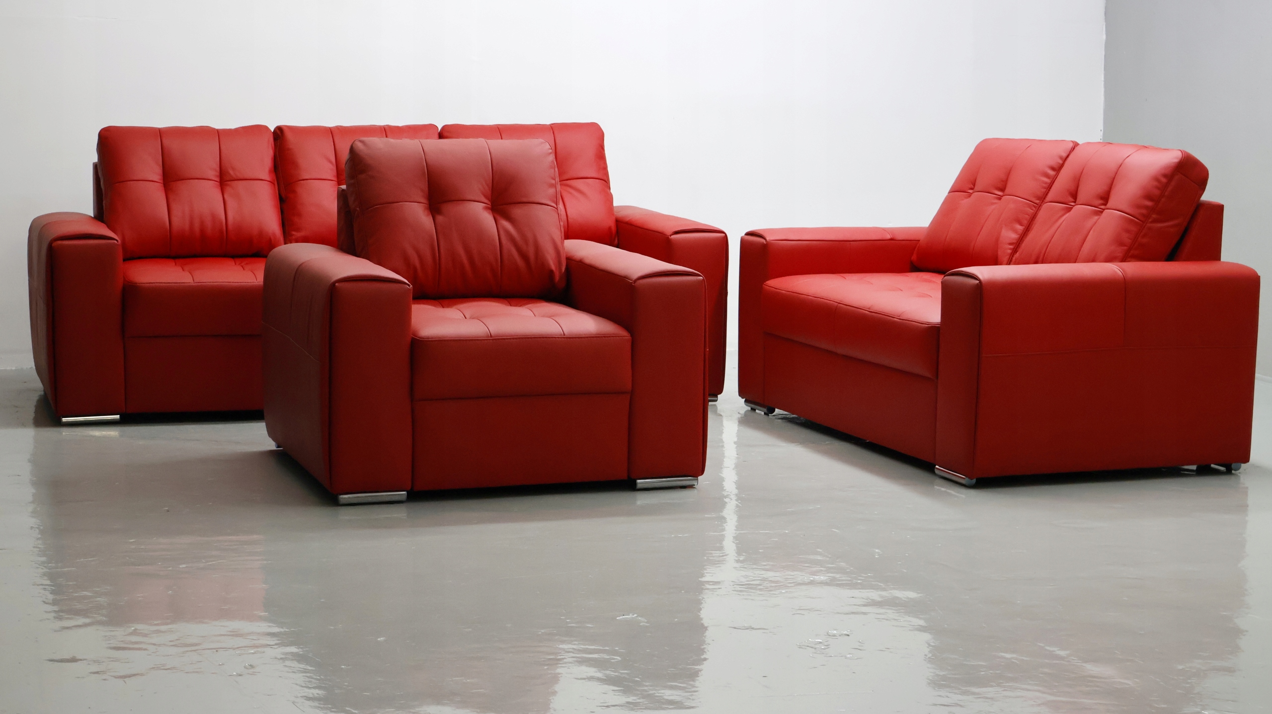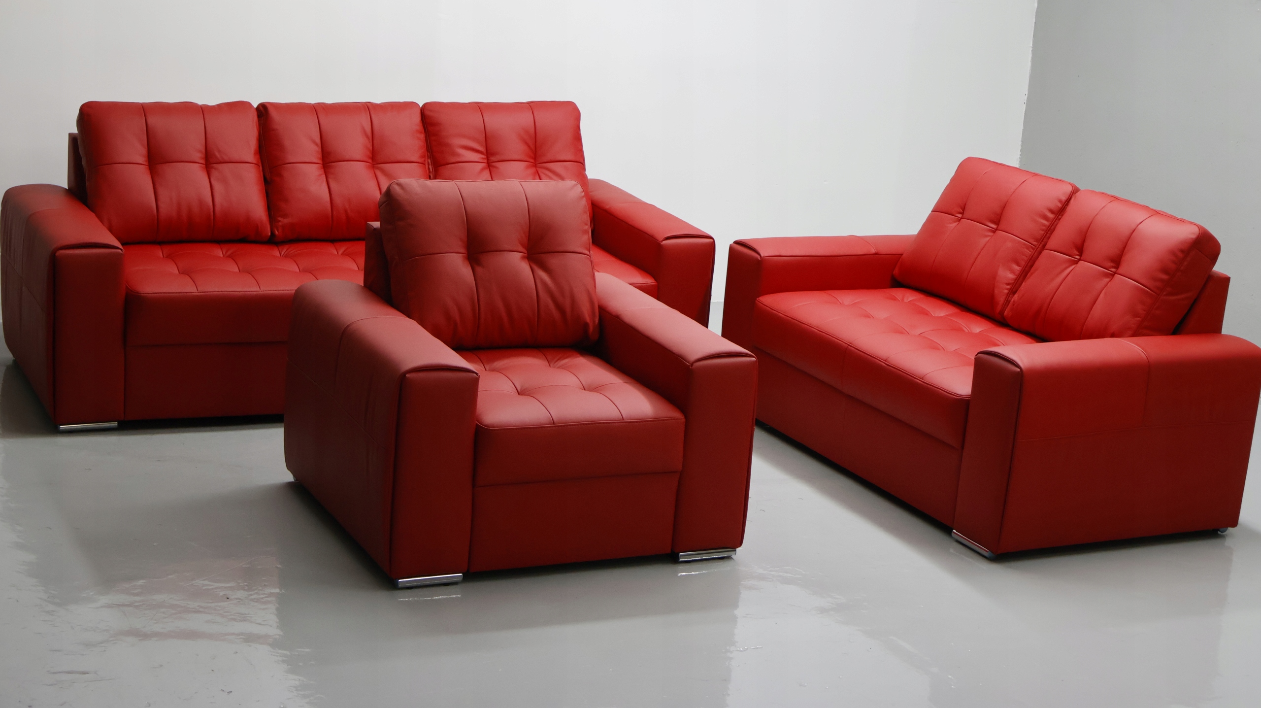 КОМПЛЕКТ 3+2+1 диванов красный, натуральная кожа 6038 досуг