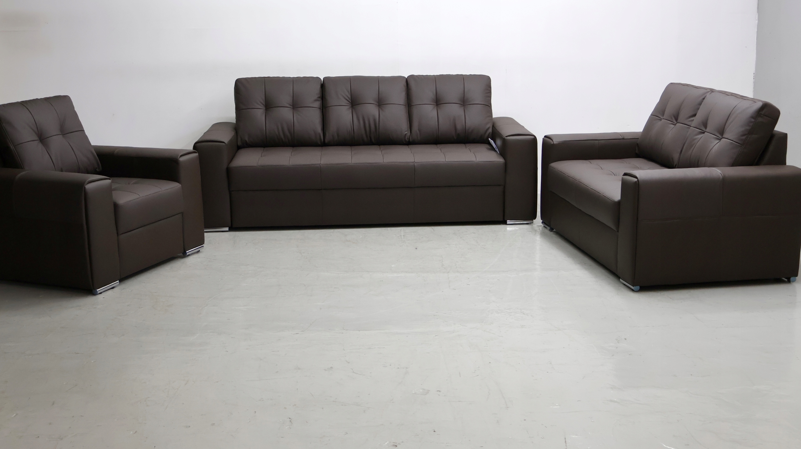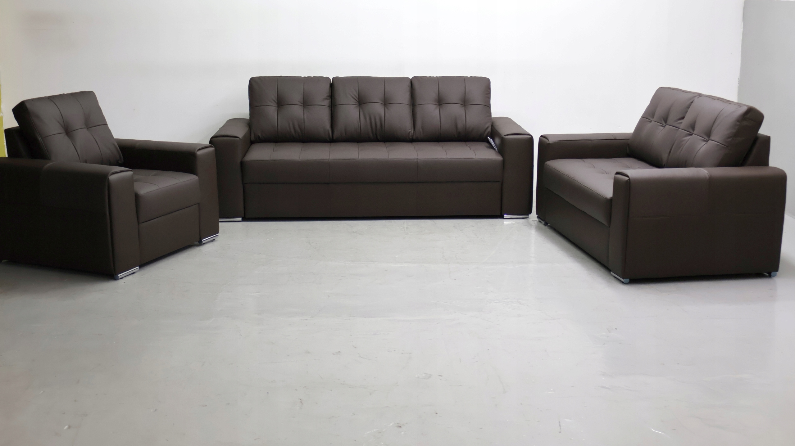 Набор - это совершенно новый изготовленный из натуральной кожи MDRAS (это благородная, классическая кожа). Мадрас натуральная кожа - это так называемая зерновая кожа, закрытая с компрессором Мадраса - это один из самых популярных видов кожи, используемых в мебели. Отдых темно -коричневый. Диваны без сна. 90см,