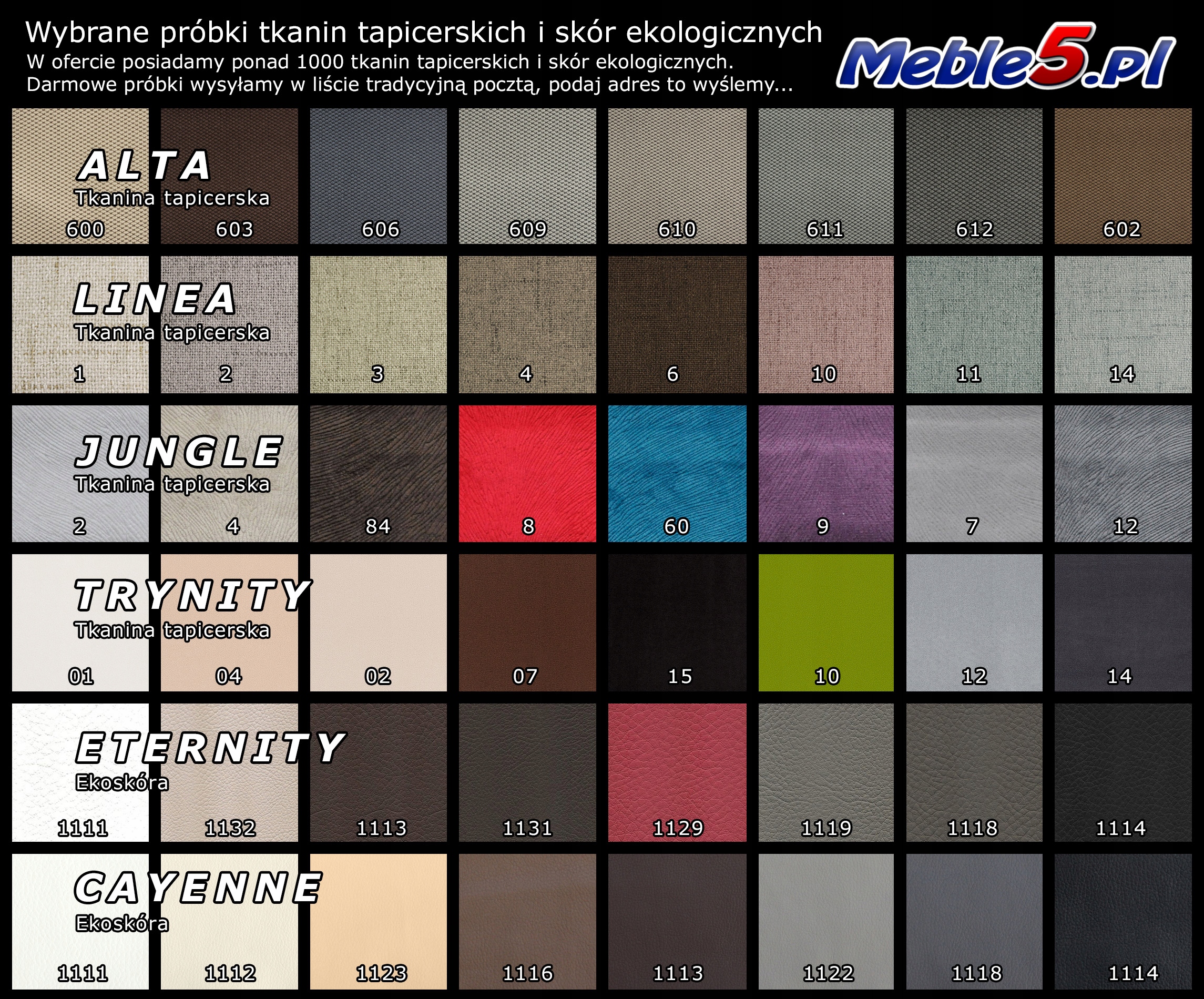 Для клиентов, которые из-за времени или расстояния не могут посетить нас лично, мы предлагаем возможность отправки выбранных образцов материалов (ткань, искусственная кожа, натуральная кожа) в конверте. Все, что вам нужно сделать, это предоставить нам адрес электронной почты или SMS, на который мы отправим образцы через Poczta Polska.