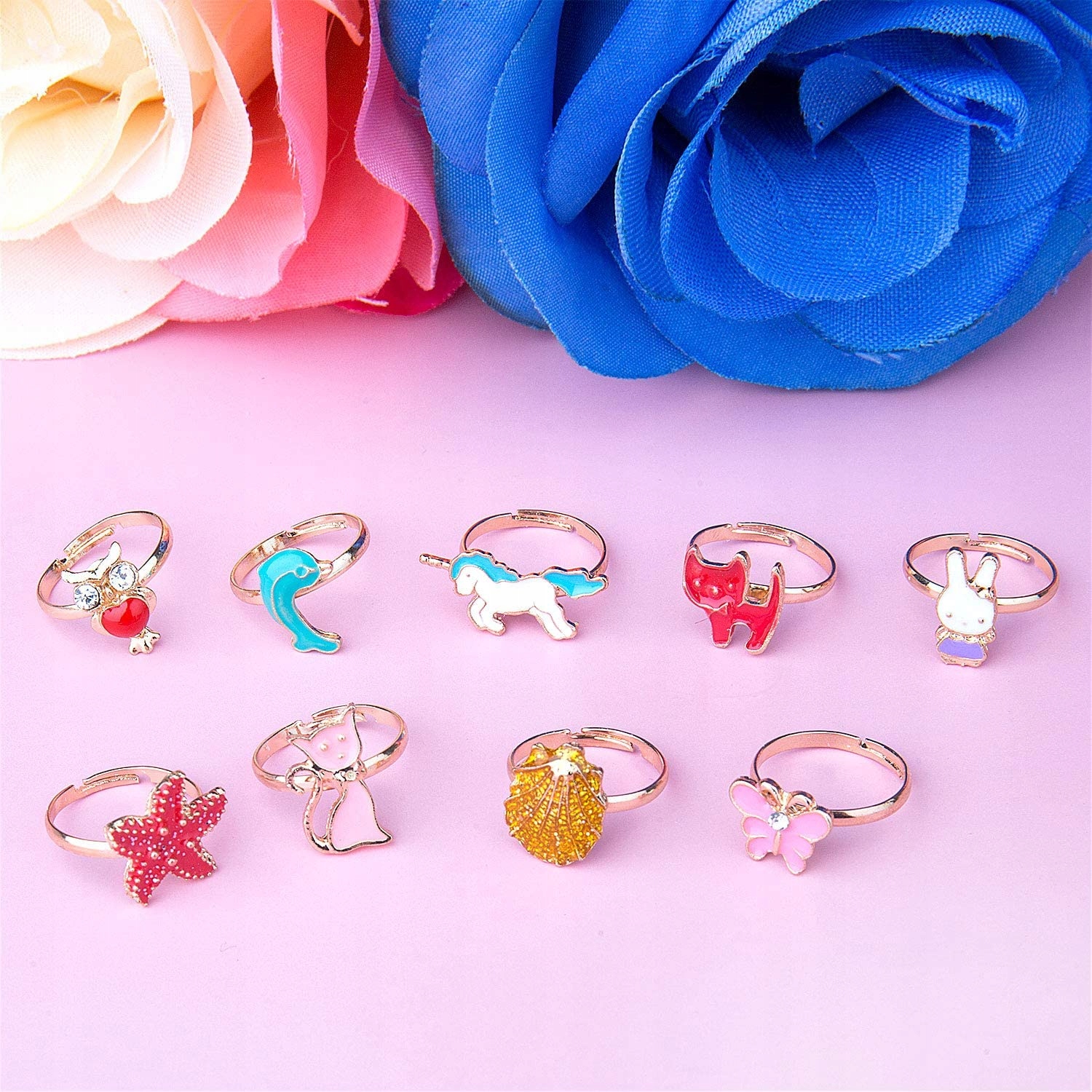 【Безопасный материал】 Кольца для игр для девочек изготовлены из цинкового сплава, края гладкие, безопасные, нетоксичные и безвкусные, гипоаллергенные и безопасные. использоваться с уверенностью. Они не имеют острых краев и легко ложатся на палец ребенка. Это приятные сувениры для маленьких девочек.