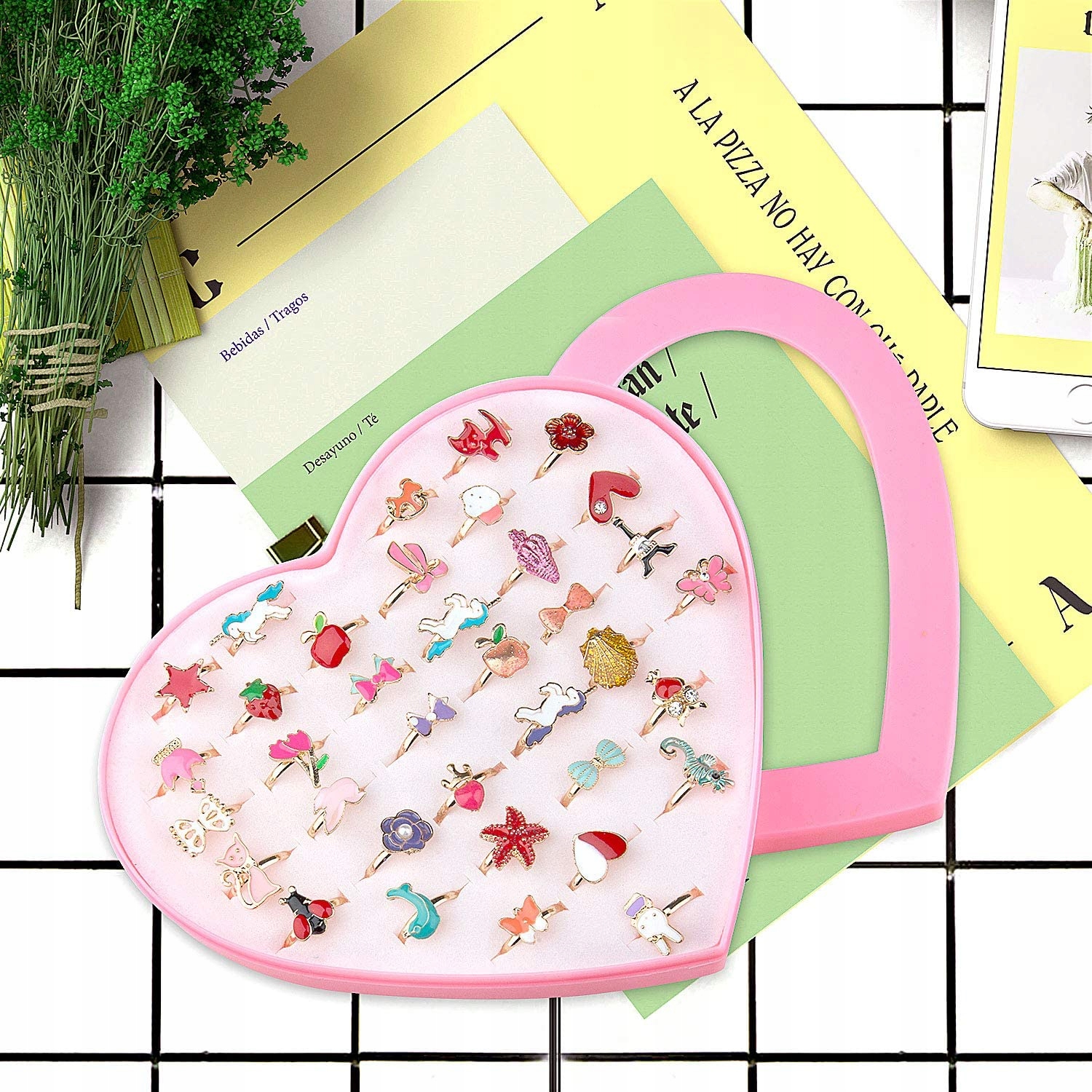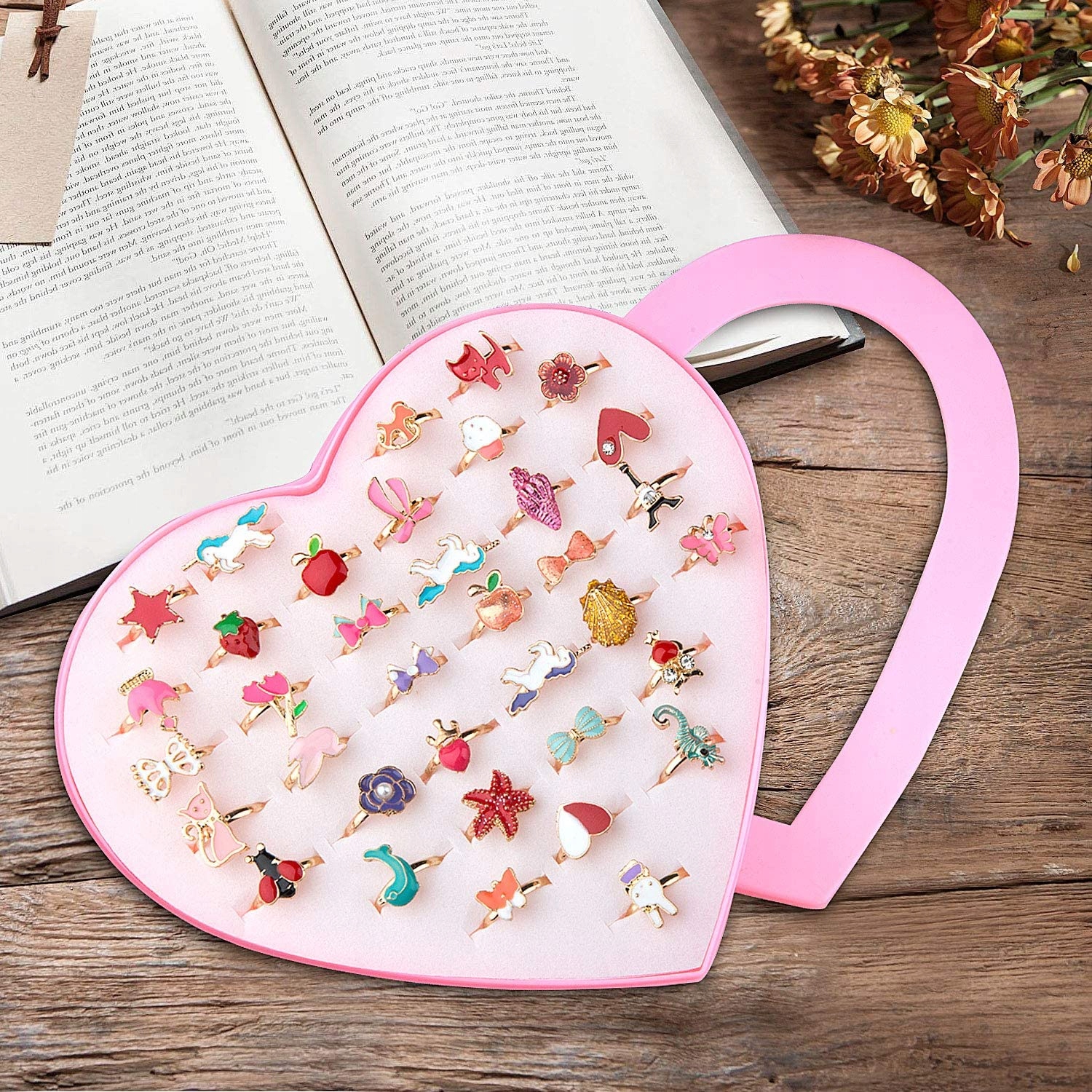 Кольца для девочек Vordas Welecoco, набор регулируемых колец из 36 штук в коробке в форме сердца, регулируемые кольца для маленьких девочек для детей, товары для детского дня рождения