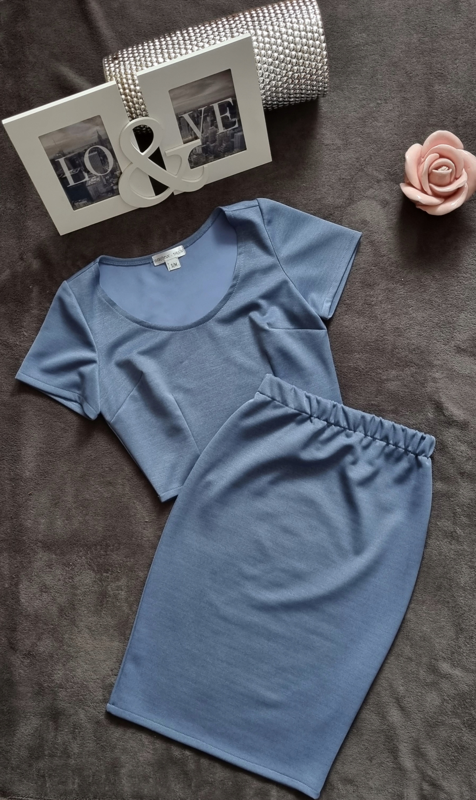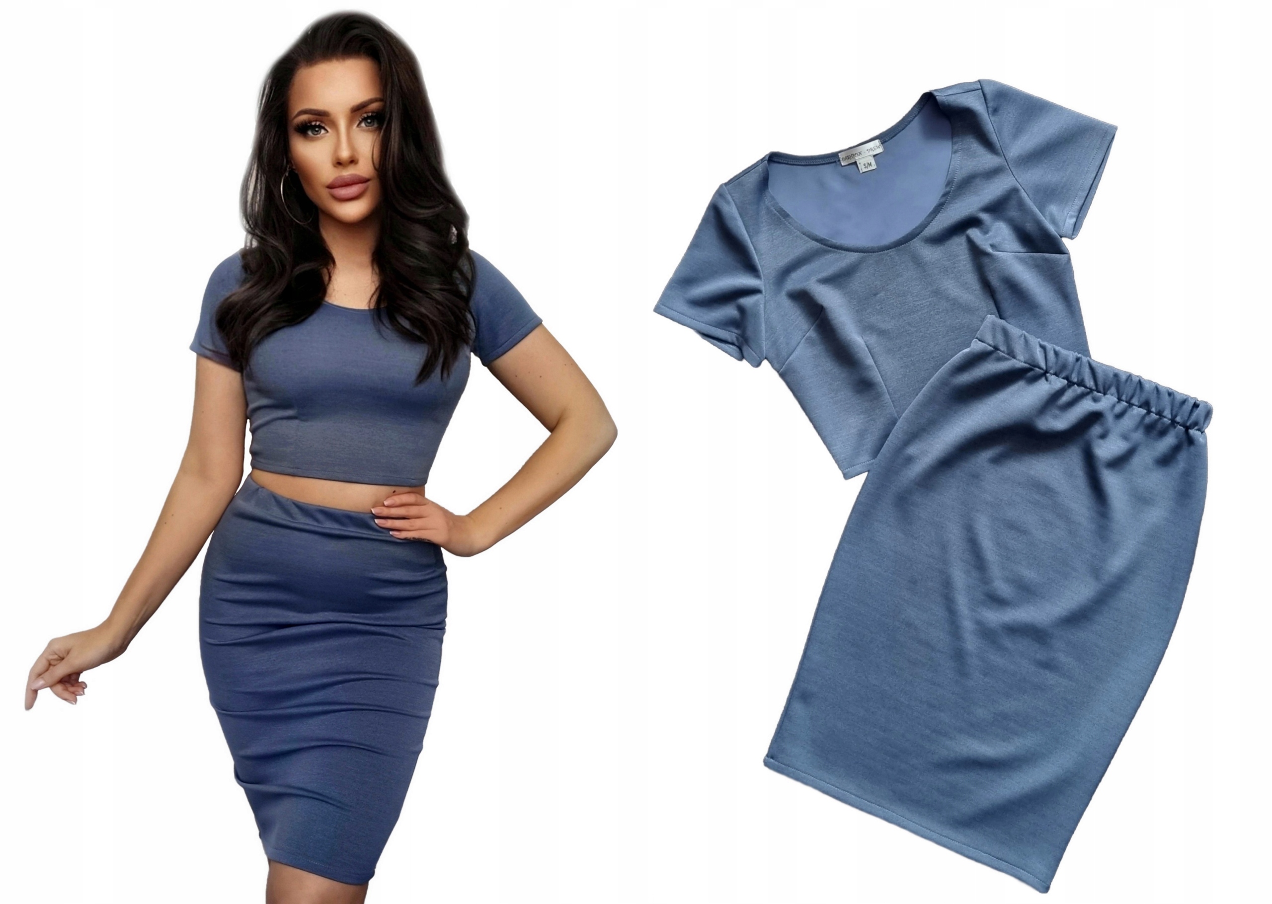 КОМПЛЕКТ ДЖИНСОВИЙ ТОП + СПІДНИЦЯ МІДІ Олівець XS/S