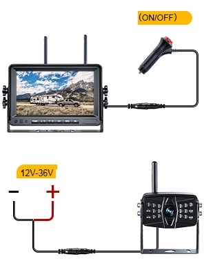 Подключите монитор к прикуривателю и включите кнопку прикуривателя. Когда подключаем питание к установленной камере, камера сразу начинает передавать сигнал.