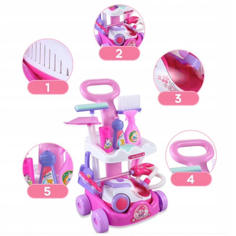 чистящий набор от авторитетного бренда woopie - идеальная идея подарка для маленькой девочки. Это high Профессиональный Набор представляет собой воспроизведение реального оборудования, обслуживающего взрослых для очистки . Розово-белая коляска была оснащена дополнительными аксессуарами , чтобы ребенок мог помочь родителям очистить. Уборщик вакуума оснащен переключателем/выключателем и сигнальной мощностью лампы. Игра в уборке с раннего возраста может быть отличным способом научиться заботиться о чистоте . Малыши любят подражать взрослым. С таким набором это будет намного проще!