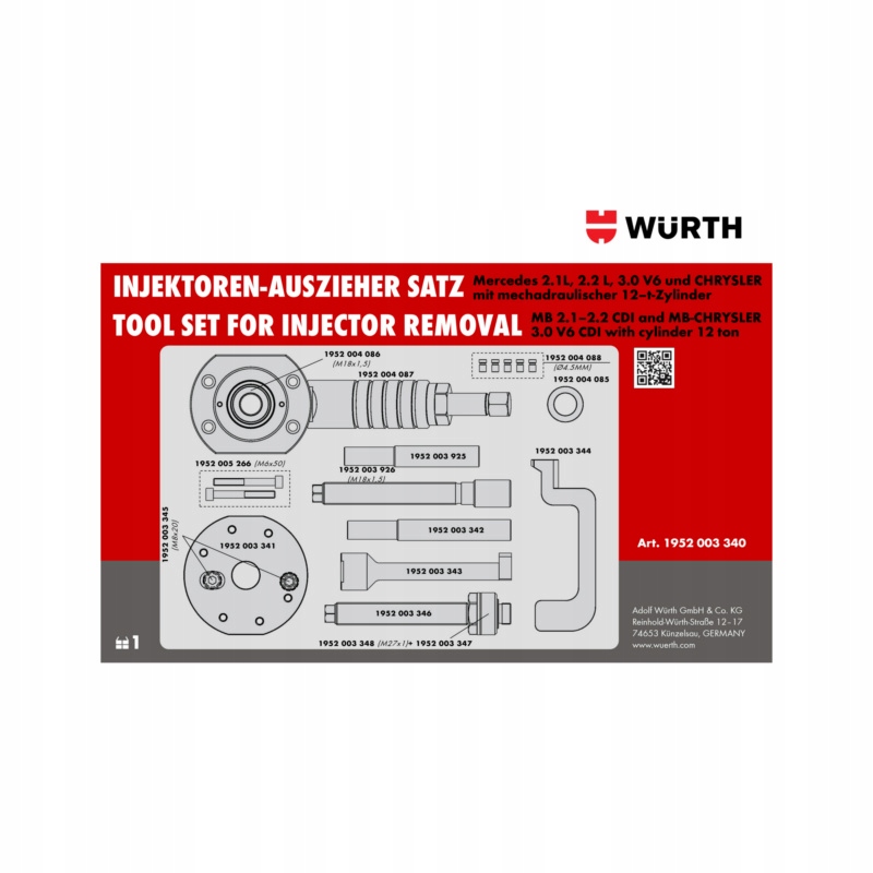 набор для демонтажей Bosch/Delphi - wurth - надежный, полный набор, который позволяет быстро и безопасно удалять инжекторы без необходимости разобрать головку или двигатель цилиндра. Благодаря новой 12-тонной Mechadraulice , набор обеспечивает максимальную производительность и комфорт использования.