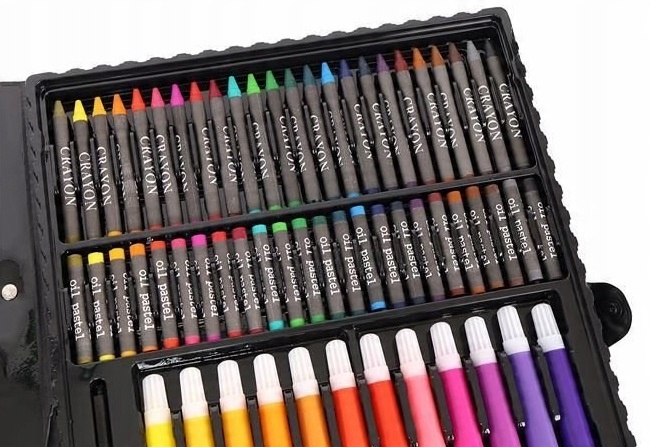 ✅ 168 ЭЛЕМЕНТОВ - используем огромный выбор из 24 мелков, 24 маркеров, 48 масляных пастелей, 48 свечных пастелей, 12 акварельных красок, точилки, клея, консилера, ластика, формата А4. листов бумаги с легкостью создадим самые изысканные, креативные и оригинальные произведения.