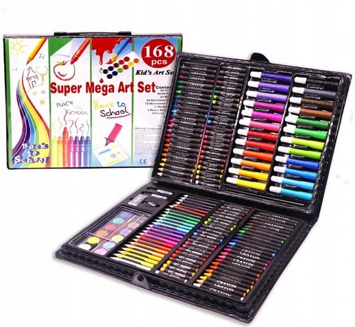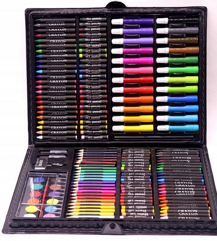 Набор упакован в эстетичный черный чемодан, что делает наше предложение идеальным в качестве подарка! Порадуйте себя или ребенка, который любит рисовать🎁 b>
