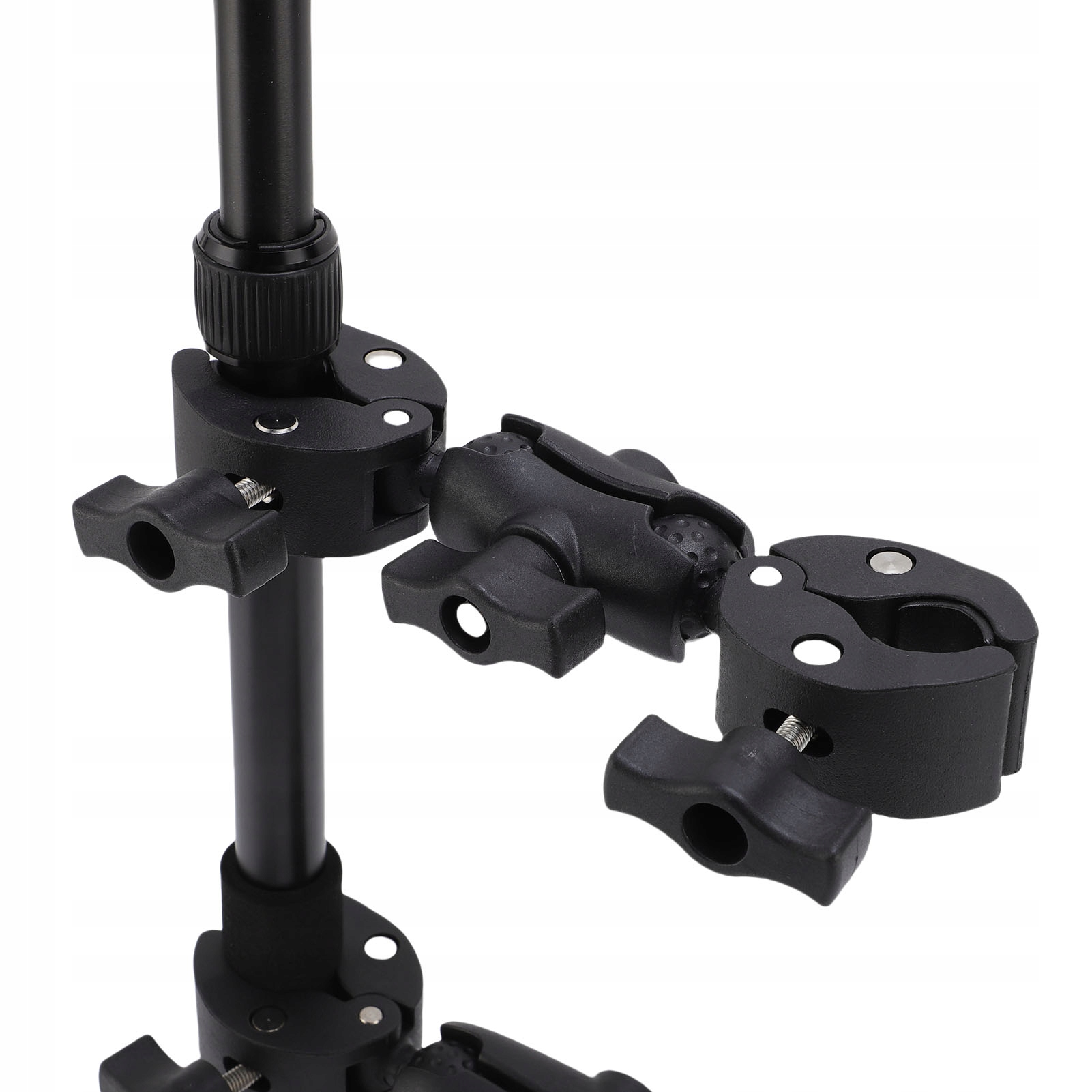 6. Зажмите телескопическую штангу зажимом с другой стороны, отрегулируйте угол и затяните винты посередине и с обеих сторон.