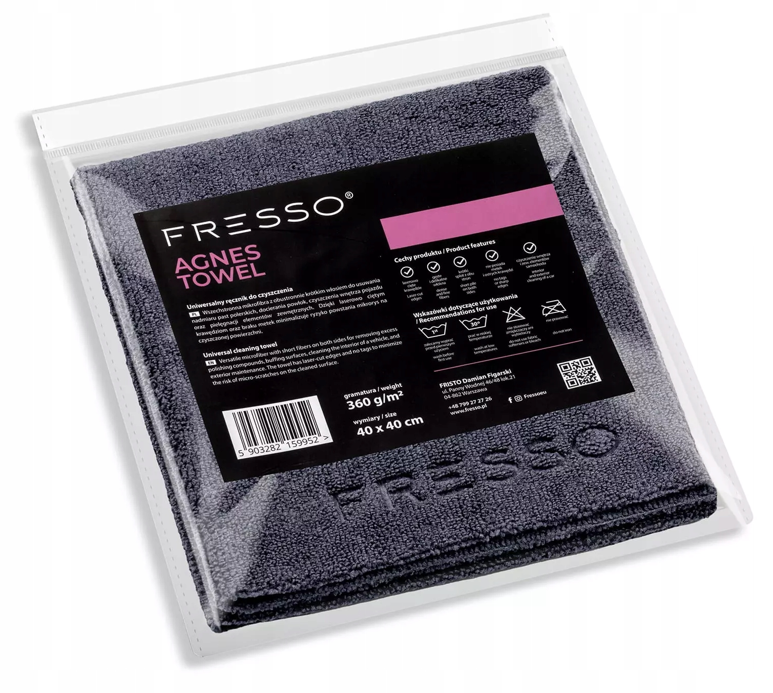 полотенце Agnes - это универсальная ткань из микрофибры с короткими щетинками с обеих сторон. Он подходит для очистки внутренней части транспортного средства и ухода за внешними частями. Идеально достигает покрытия и удаляет лишнюю полировую пасту