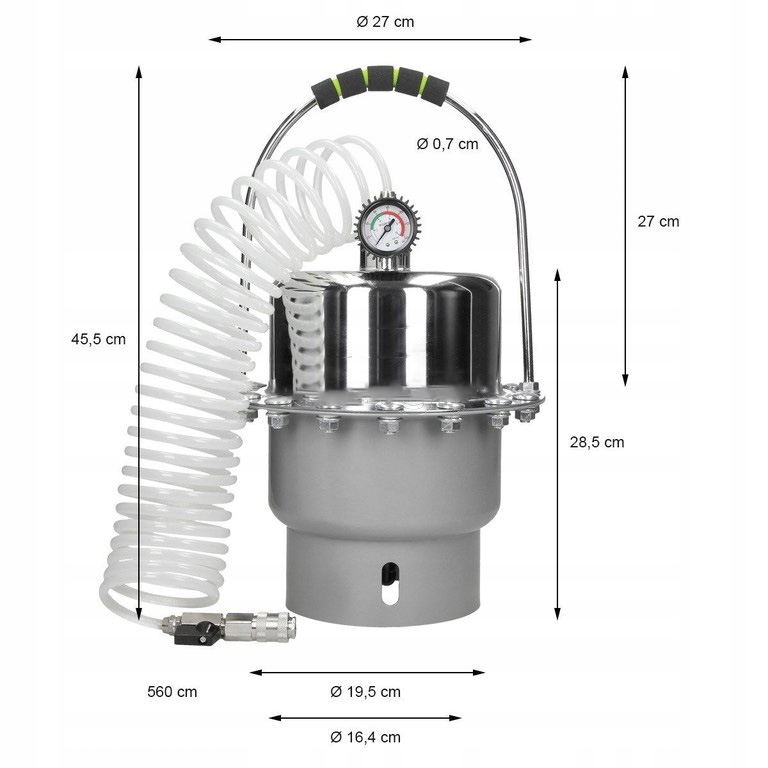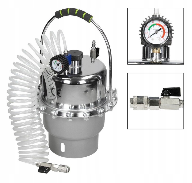 Устройство предназначено для слива, прокачки и замены жидкости в тормозных системах и гидромуфтах. Это позволяет одному человеку заменить жидкость в течение нескольких минут, без риска попадания воздуха в систему. Дополнительно устройство имеет специальный бак низкого давления, который можно предварительно заполнить сжатым воздухом. Благодаря этому устройство может работать без необходимости постоянной подачи сжатого воздуха. В комплект входит набор заглушек для самых популярных марок автомобилей.