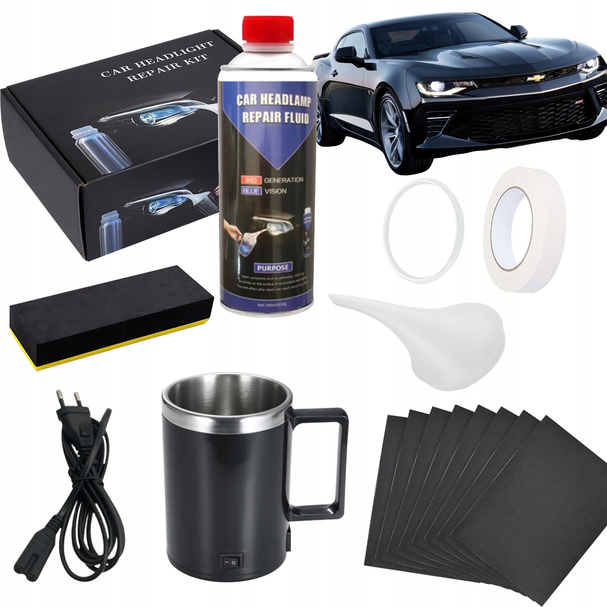 Комплект для регенерації реставрації фар: чайник абразивні диски рідина